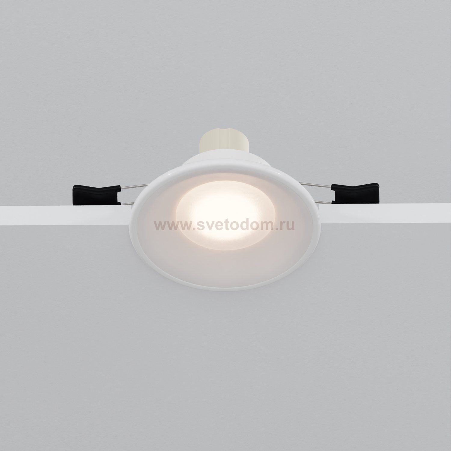Корпус из алюминиевого сплава, покрытый акрилом. Сияющий эффект при свечении. Цвет – нежно-белый. Лампа GU10. Отсутствие стопорного кольца.