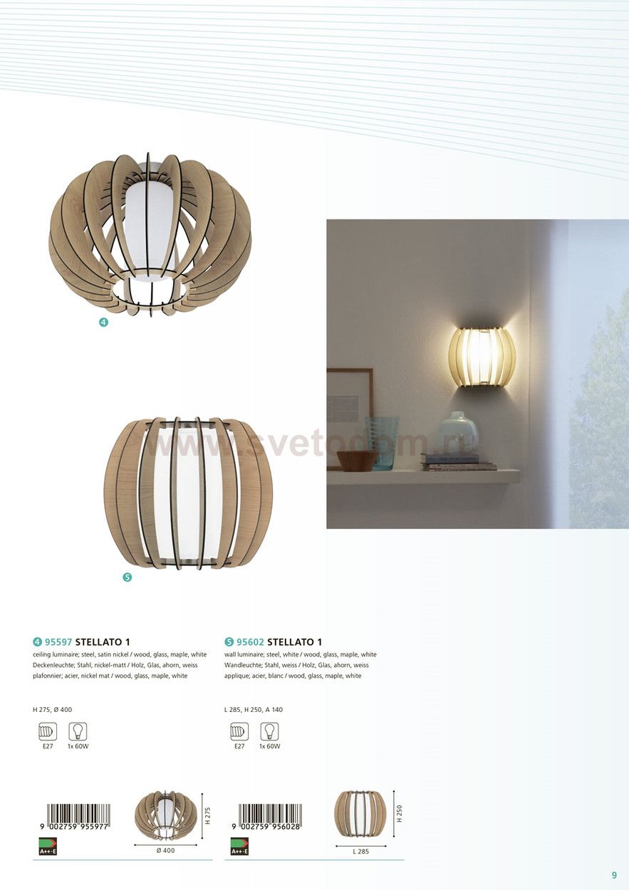 Бра STELLATO 1, 1X60W (E27), L285, H250, сталь, белый/дерево, стекло, клен применяется преимущественно в домашнем освещении с использованием стандартных выключателей и переключателей для сетей 220V.