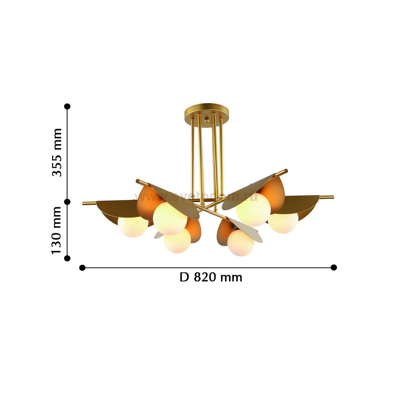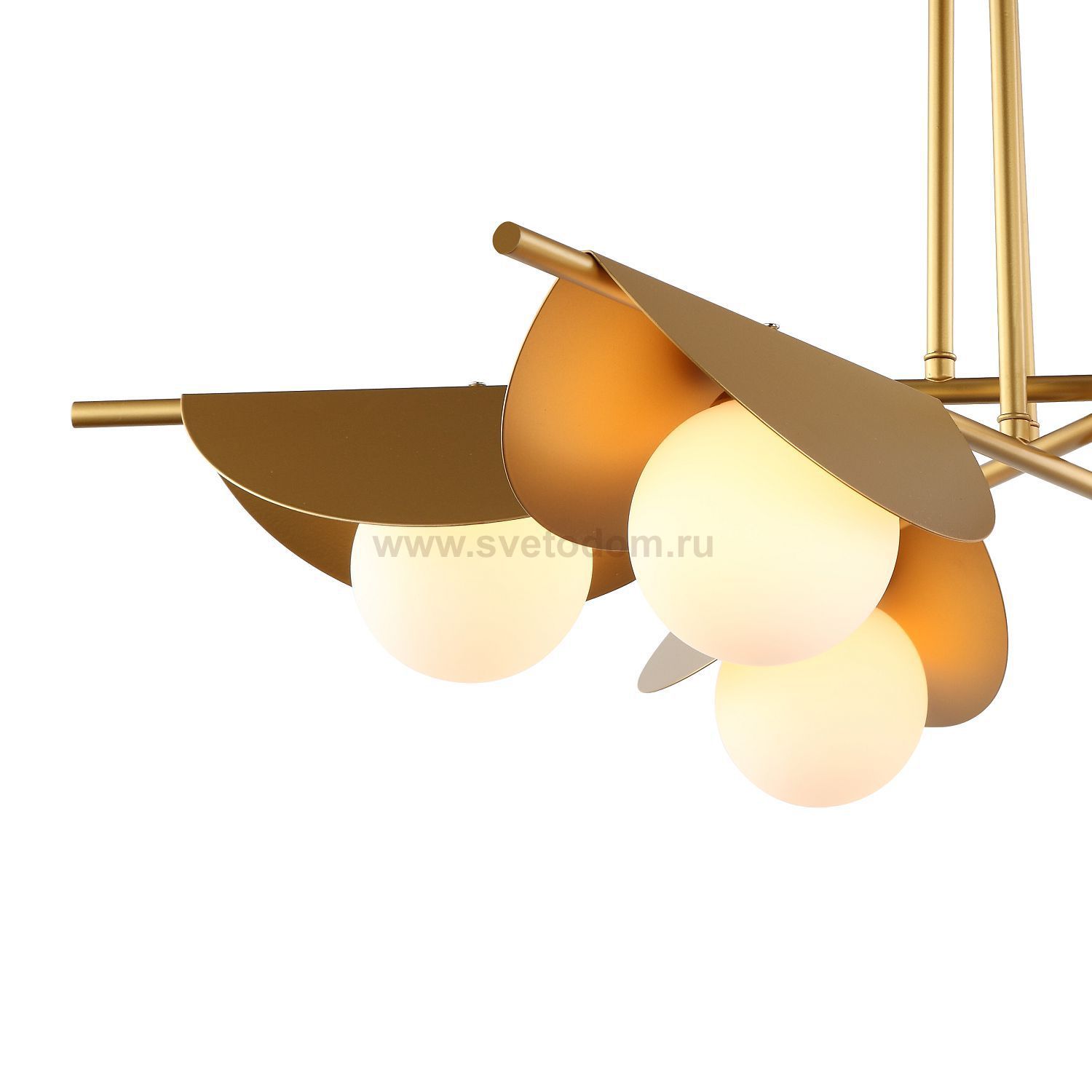 каркас цвета окрашенное золото, белое выдувное стекло Материал плафона