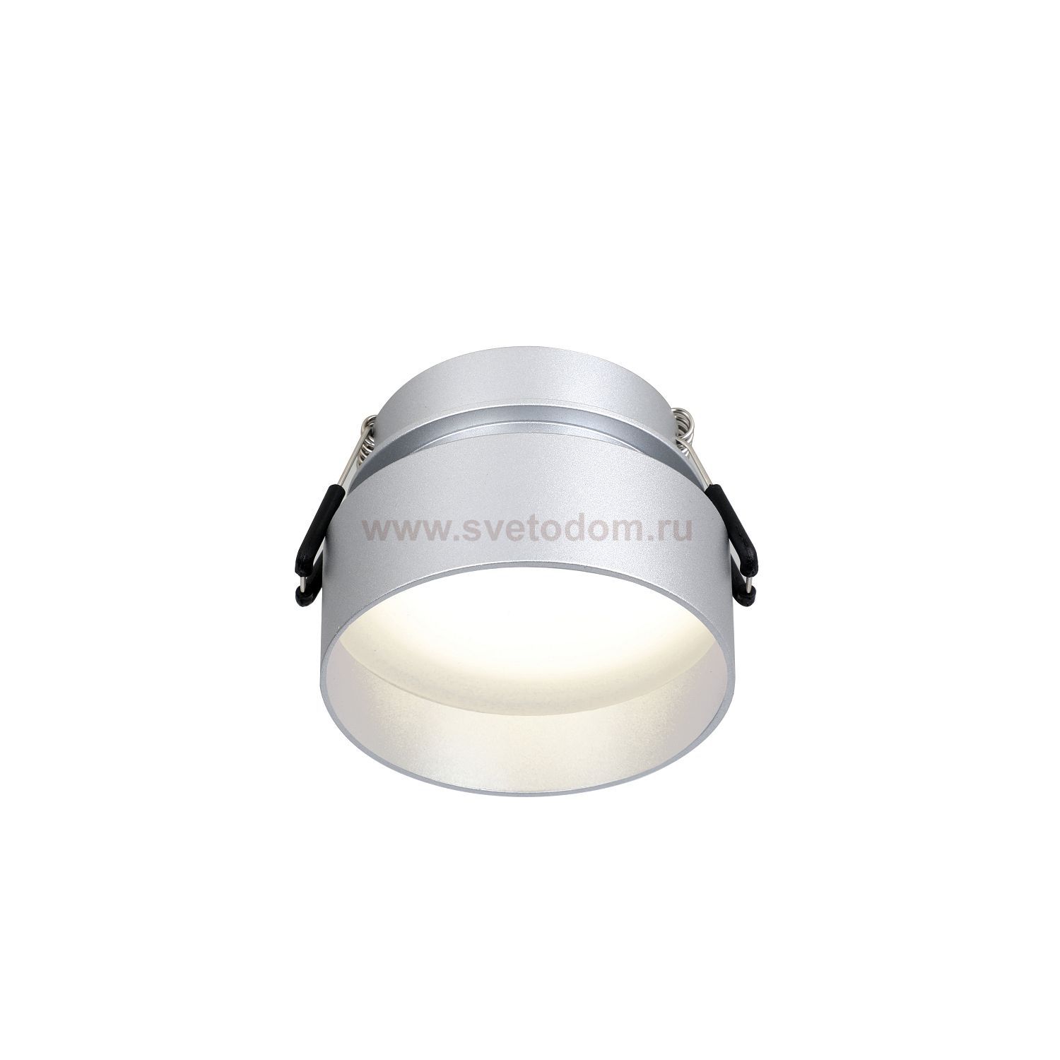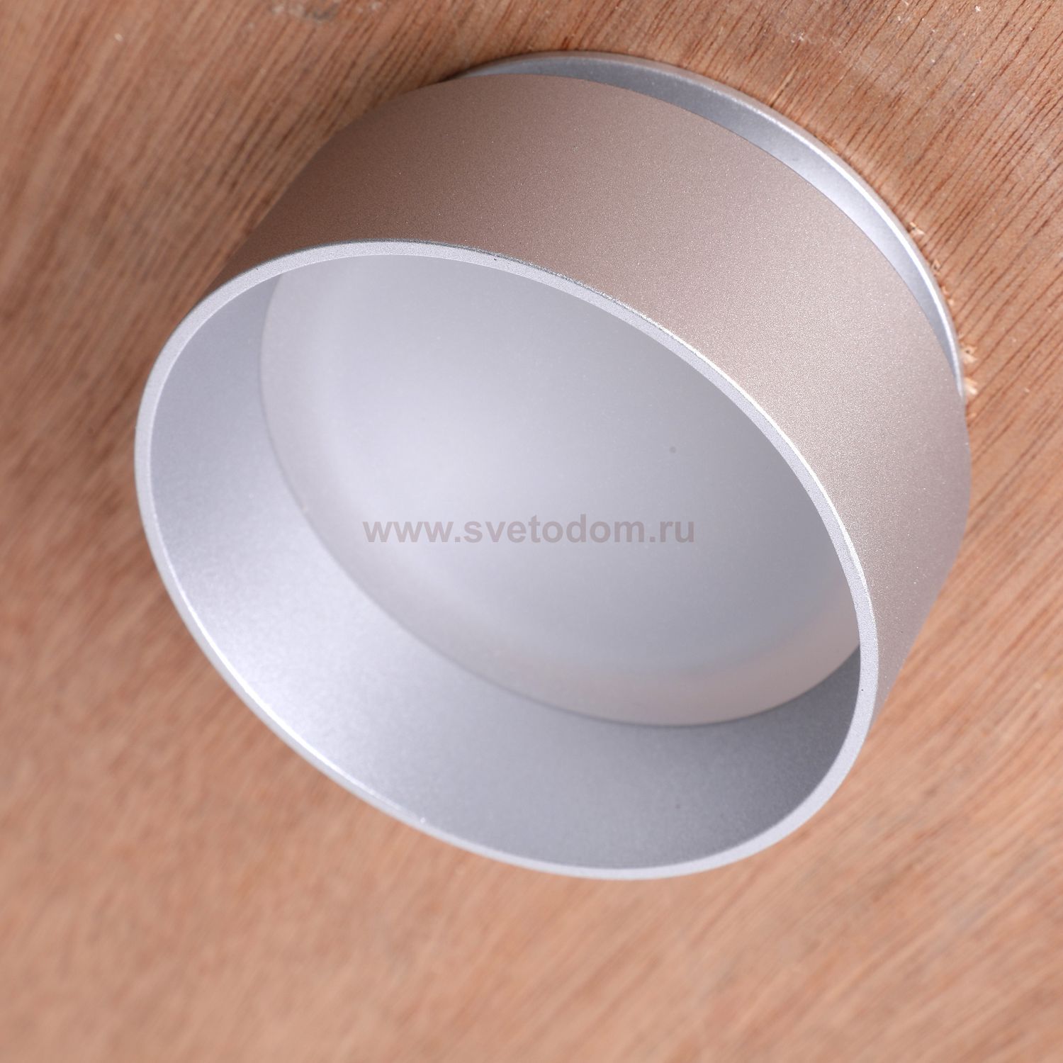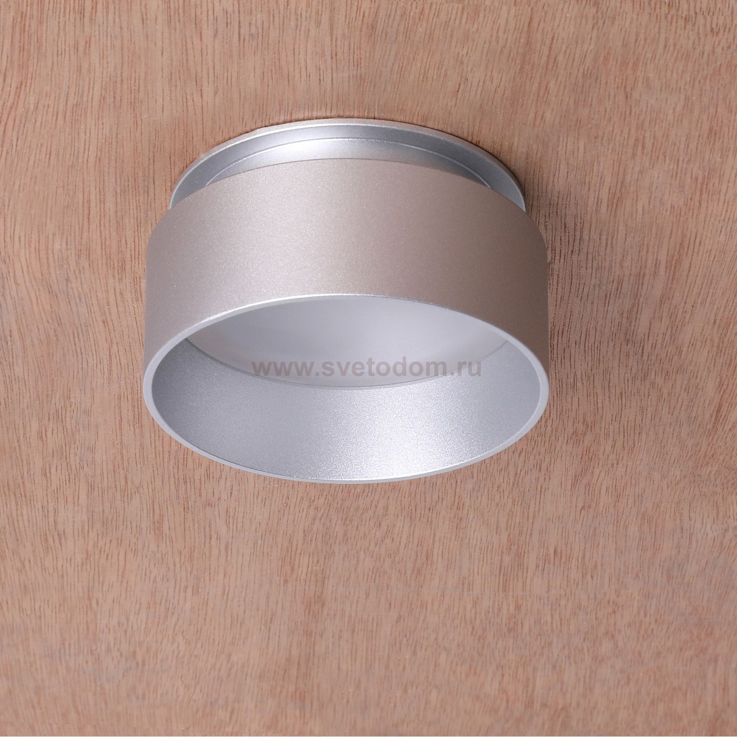 Врезной светильник серебряного цвета, зазор между плафоном и поверхностью потолка оставляет оригинальный световой эффект, лампу можно менять Штрих-код