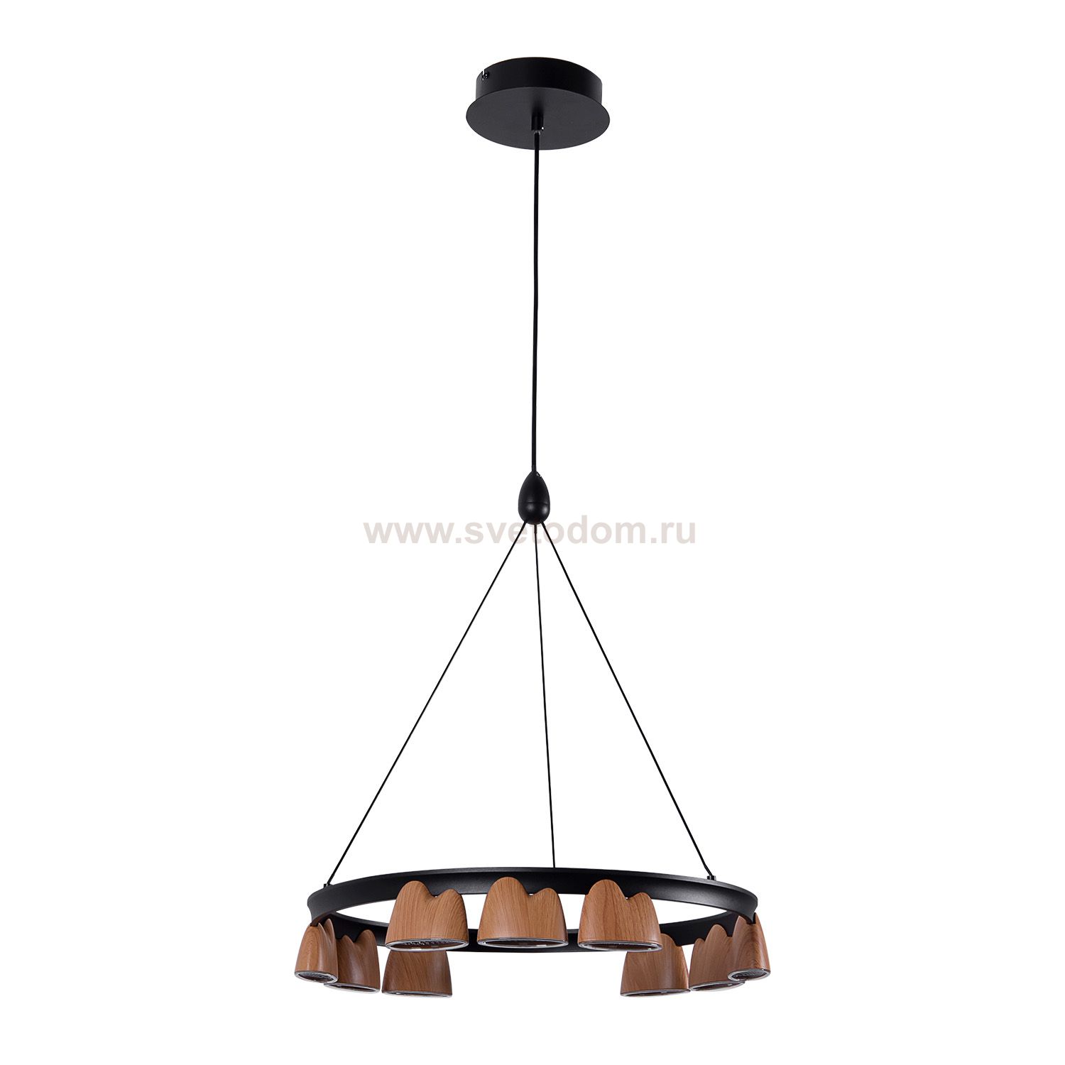 Подвесная люстра, сочетание черной матовой арматуры и необычных плафонов цвета дерева, регулируемая высота, LED- лампы Серия