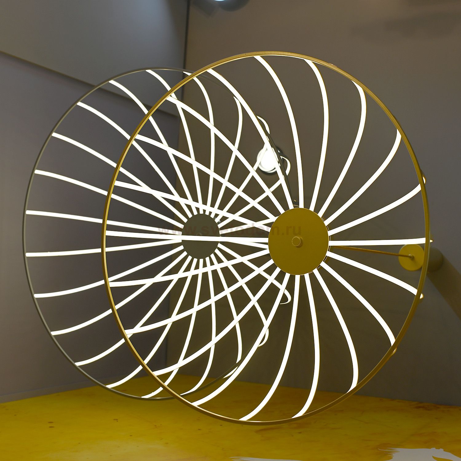 Подвесная люстра с диаметром 60 см, в цвете бронза. Источником света являются расходящиеся из центра лучи, выполненные из тонких металлических трубок, Серия