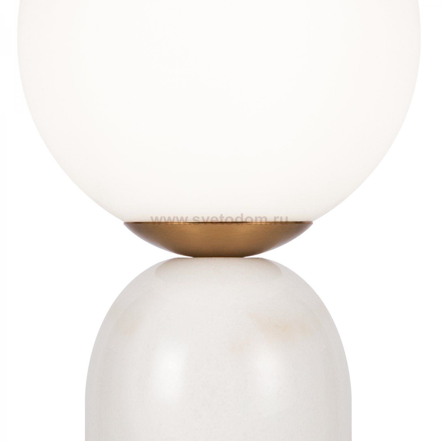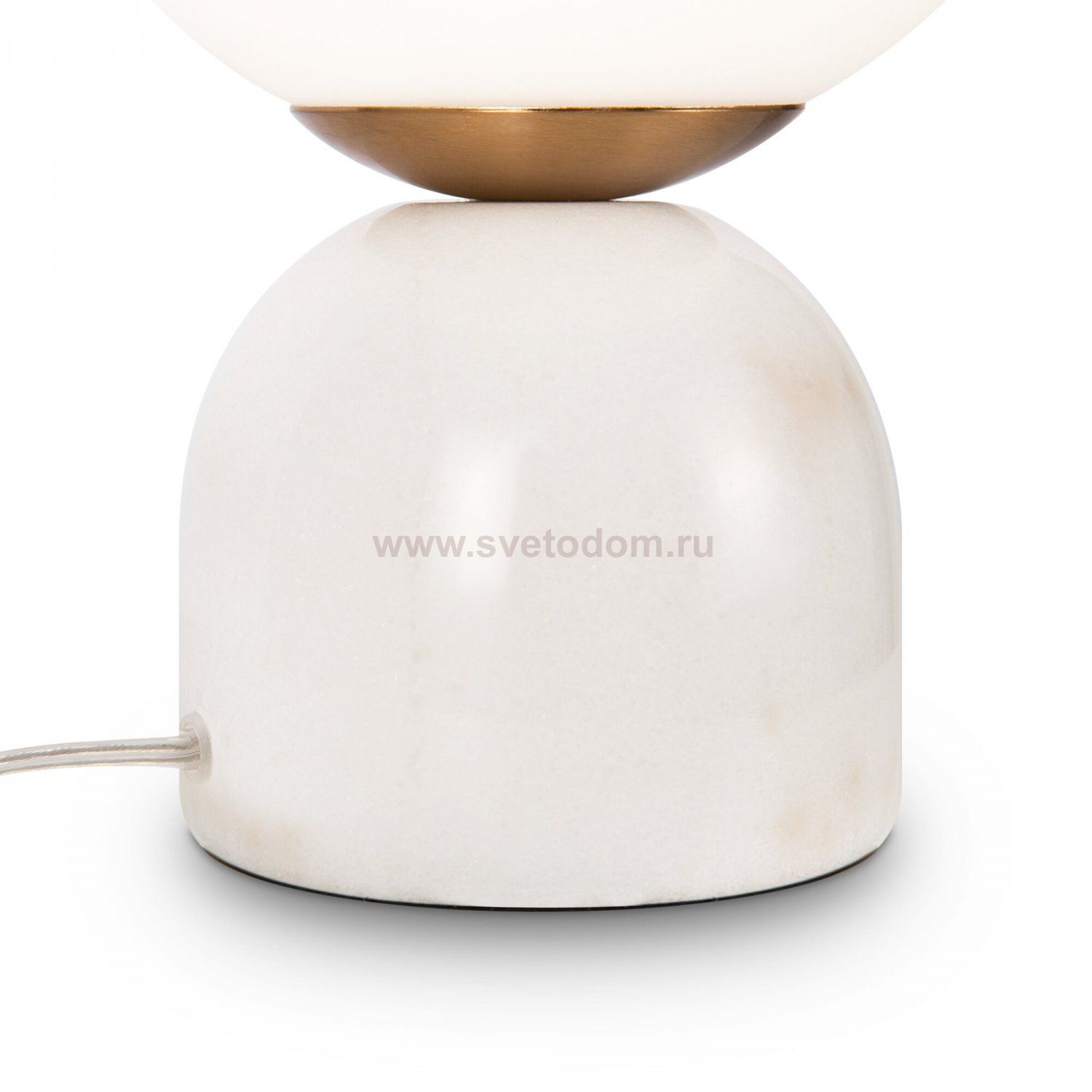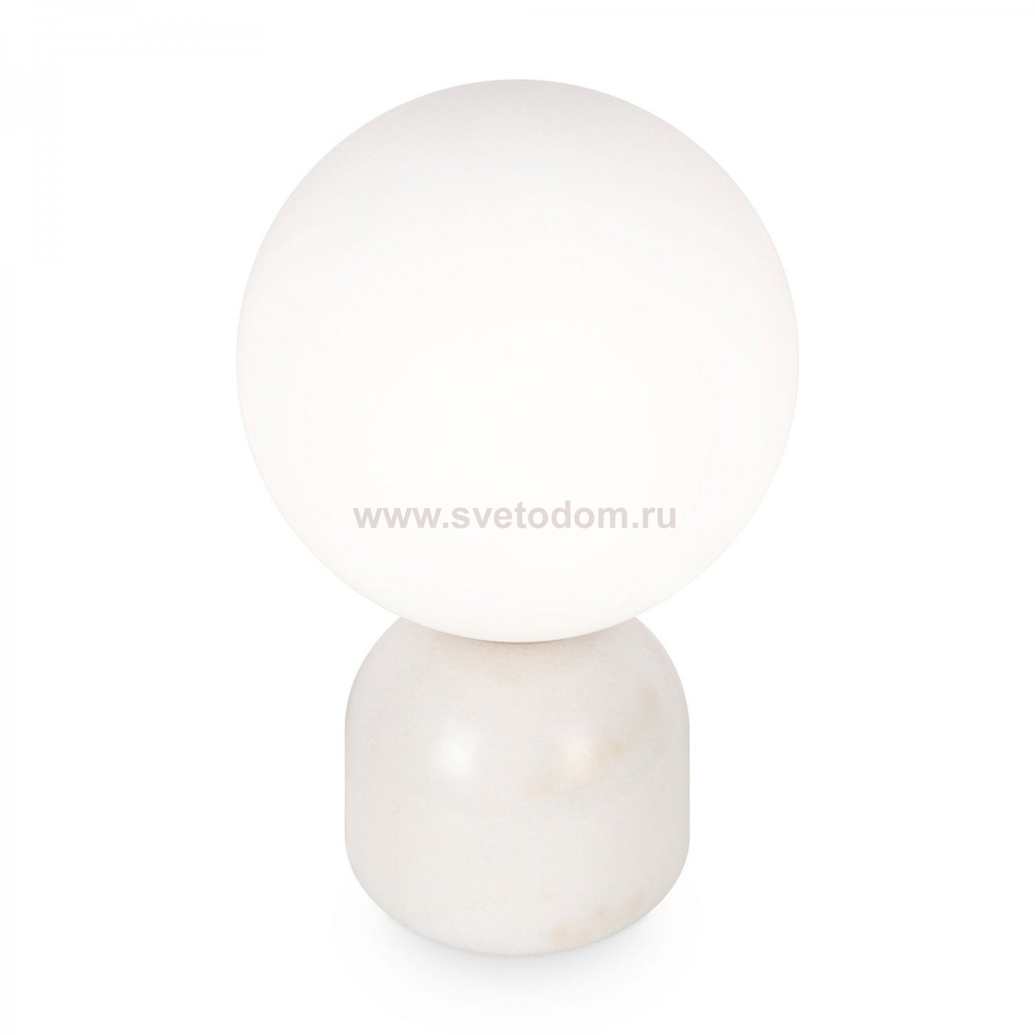 Материал основания — натуральный мрамор с уникальным рисунком. Цвета — белый, черный. Шаровидный плафон. Источник света — лампа с цоколем E14.
