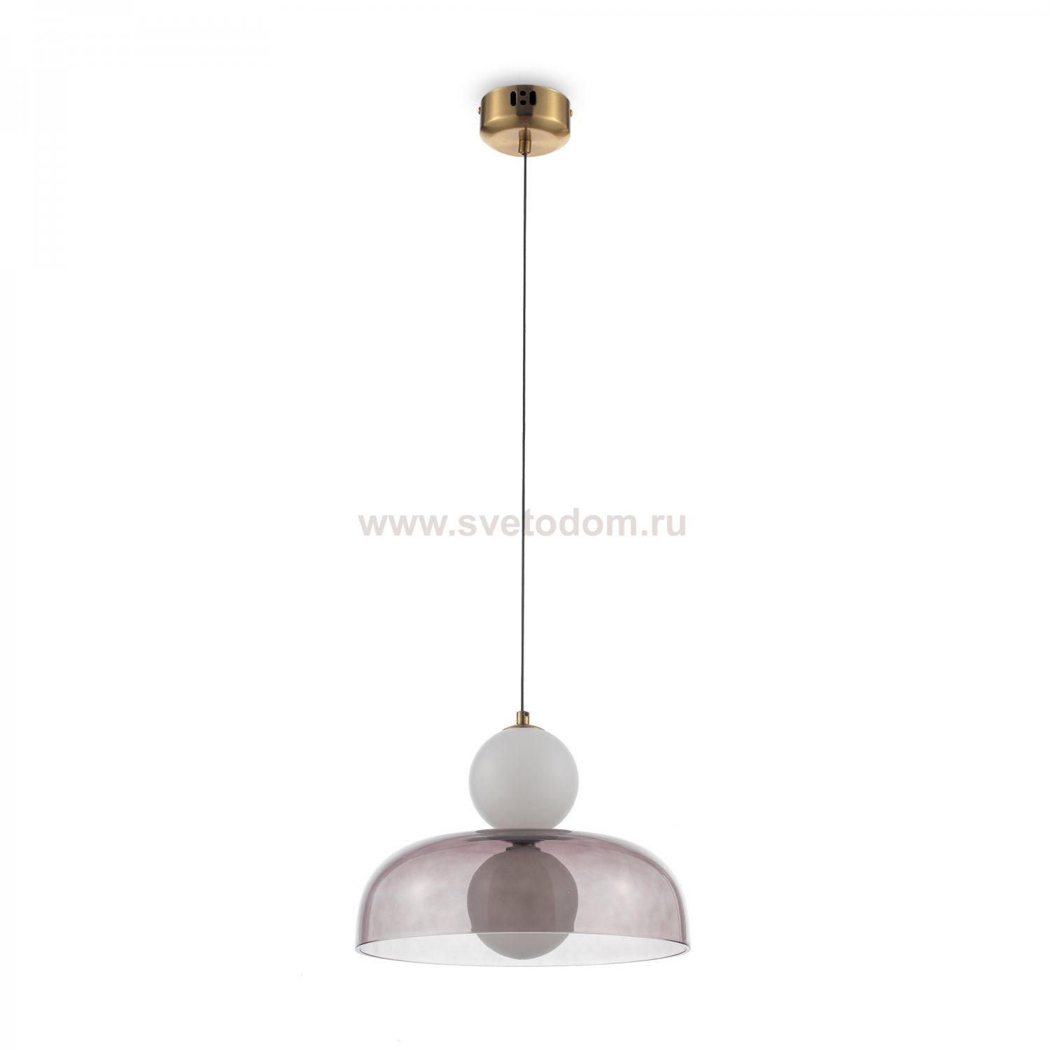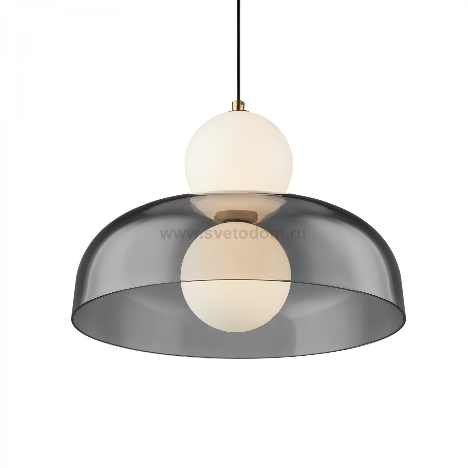 Арматура - металл, цвет - латунь. Стеклянные плафоны в виде сдвоенных матовых “шариков” дополнены широкими декоративными плафонами из стекла двух оттенков: дымчатый и янтарный. LED-источник света. Цветовая температура - 3000К. Светильники подойдут для светлых интерьеров и детских комнат.
