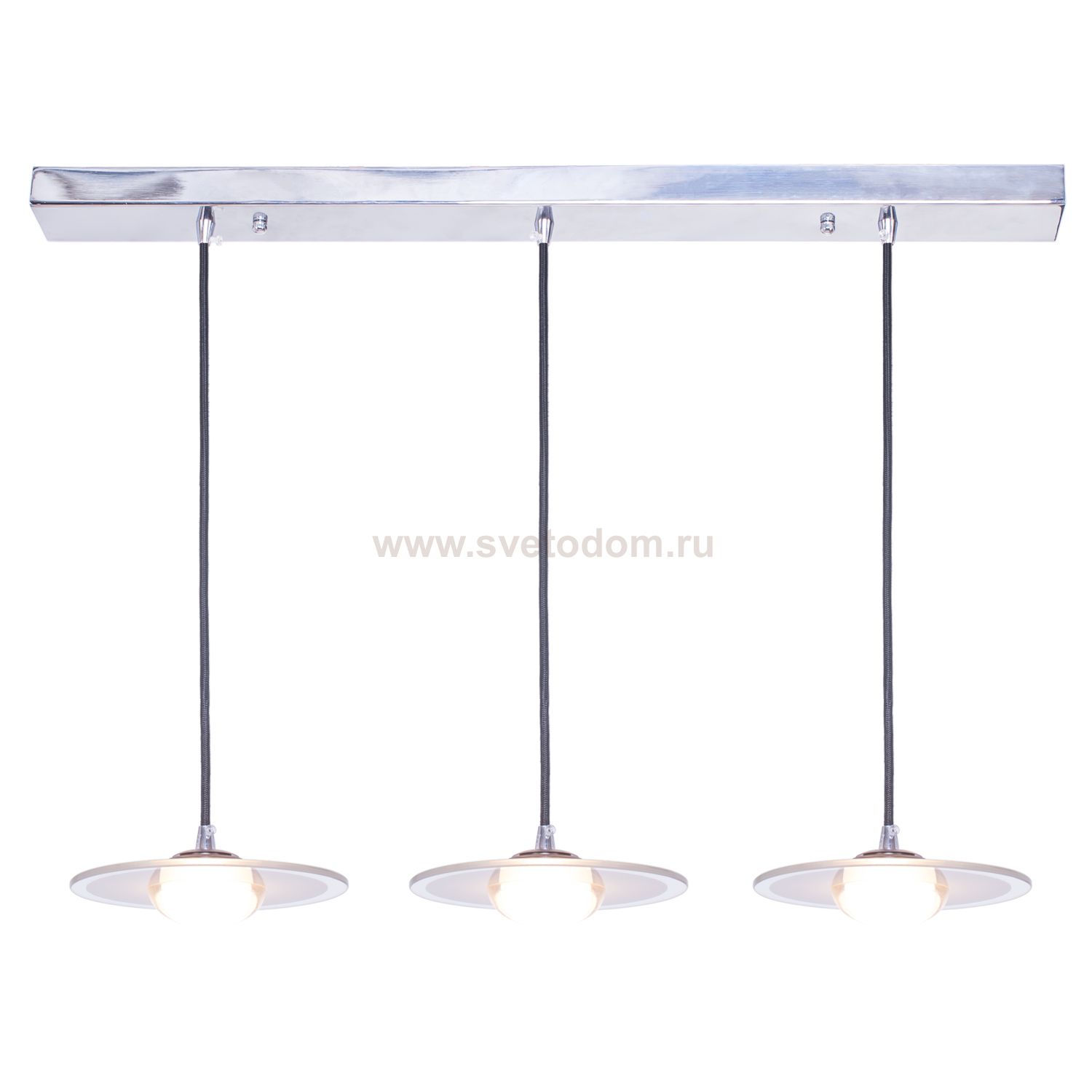 Подвесной светодиодный светильник G61033/3CR+BK WT в современном стиле от бренда Gerhort. Каркас выполнен из материала металл; цвета: хром и черный. Плафоны (светорассеиватели) выполнены из материала стекло, цвет белый. Встроенные LED модули на 15 Вт осветят до 6 м?. Свет теплый, мягкий.