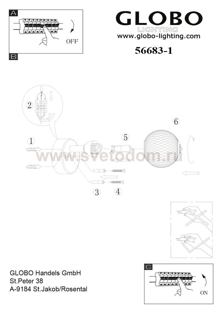 Светильники-споты – это оригинальные изделия с современным дизайном. Они позволяют не ограничивать свою фантазию при выборе освещения для интерьера. Такие модели обеспечивают достаточно качественный свет. Благодаря компактным размерам Вы можете использовать несколько спотов для одного помещения. Интернет-магазин «Светодом» предлагает необычный светильник-спот Globo 56683-1 по привлекательной цене. Эта модель станет отличным дополнением к люстре, выполненной в том же стиле. Перед оформлением заказа изучите характеристики изделия. Купить светильник-спот Globo 56683-1 в нашем онлайн-магазине Вы можете либо с помощью формы на сайте, либо по указанным выше телефонам. Обратите внимание, что у нас склады не только в Москве и Екатеринбурге, но и других городах России.