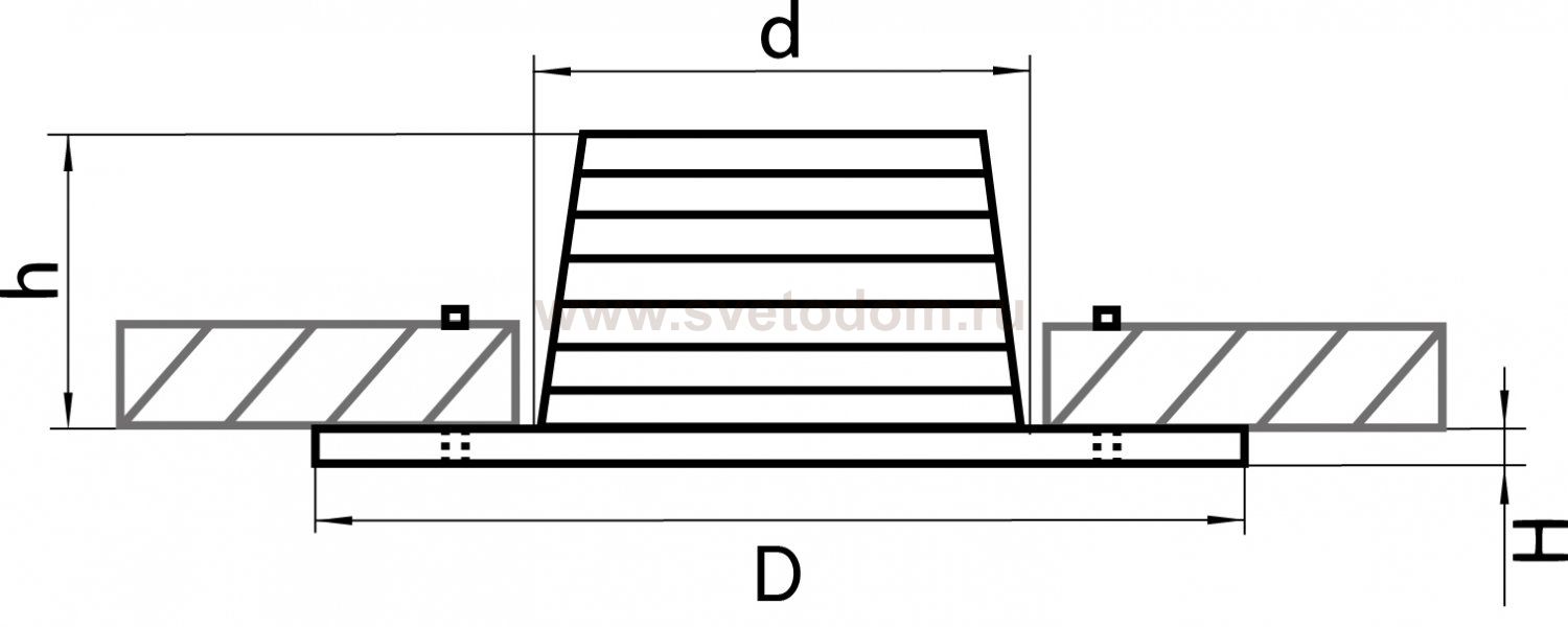 Данный размер указывает какое отверстие необходимо сделать для правильного монтажа. Зачастую светильники выбирают после ремонта и сделанных монтажных отверстий, тогда подбор осуществляется строго в размер +/- 2-5мм.