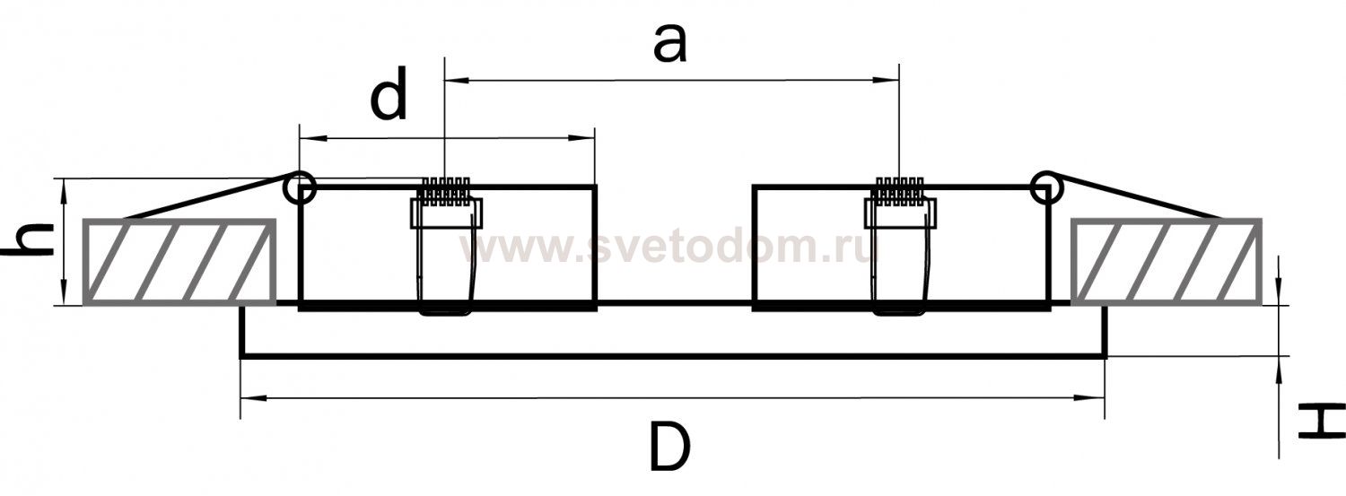 Данный размер указывает какое отверстие необходимо сделать для правильного монтажа. Зачастую светильники выбирают после ремонта и сделанных монтажных отверстий, тогда подбор осуществляется строго в размер +/- 2-5мм.