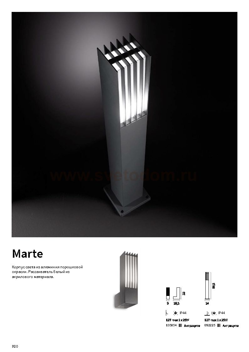 Ideal Lux MARTE AP1 ANTRACITE Настенный светильник не просто обеспечит качественное наружное освещение, но и станет украшением Вашего загородного участка. Модель выполнена из современных материалов и имеет влагозащитный корпус, благодаря которому ей не страшны осадки.