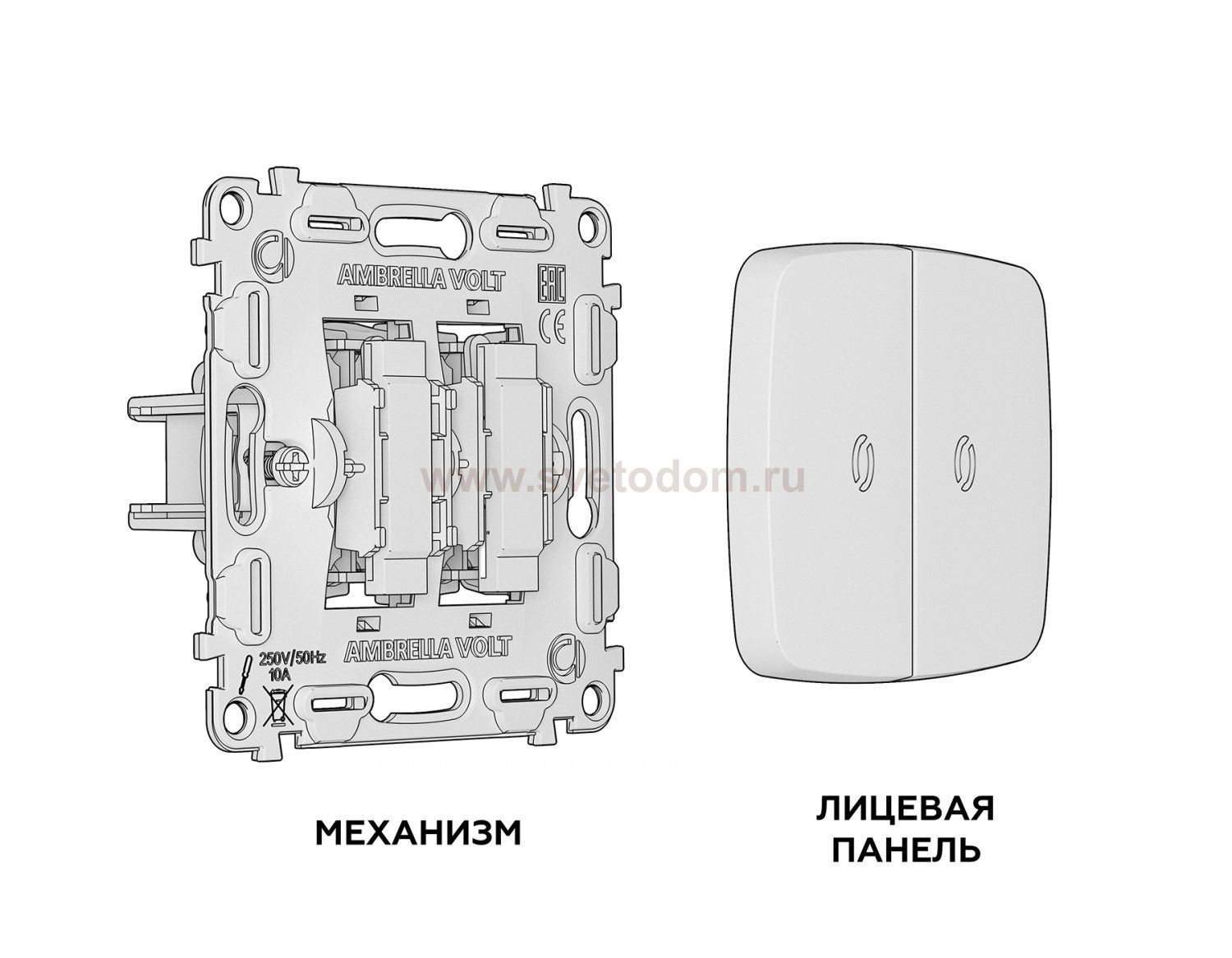 Многогранный ассортимент Ambrella Volt включает в себя механизмы, лицевые панели и рамки, а также комплекты, доступные в различных цветовых решениях. Продукция представлена в модульном исполнении, что позволяет гибко настраивать внешнийвид и функциональность. Вам будет легко заменить лицевую панель, рамку или механизм, найдя идеальное сочетание цветов.