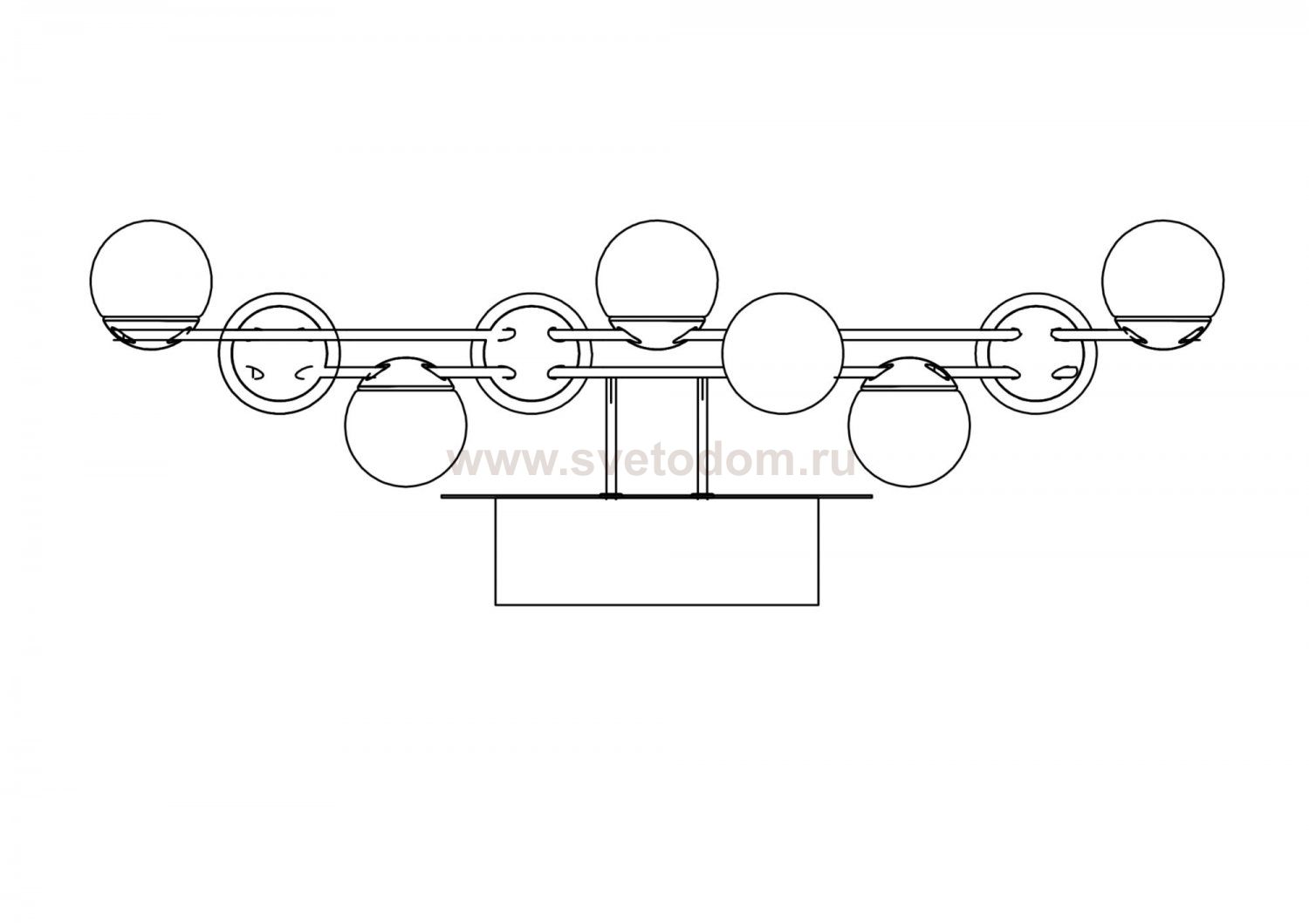 Арматура из металла в золотом цвете. Плафоны-сферы — белый пластик. Дизайн с имитацией молекулярной структуры. LED-источники света.