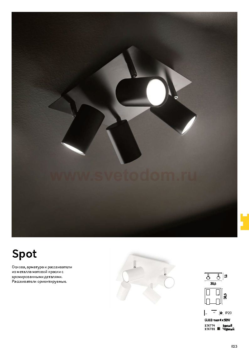 Потолочный светильник от известной итальянской фабрики Ideal lux из каталога Tecnico в современном стиле под артикулом SPOT PL4 NERO (156781) серии SPOT имеет ряд отличительных характеристик: Основа, арматура и рассеиватели из металла матовой краски с хромированными деталями. Рассеиватели ориентируемые.