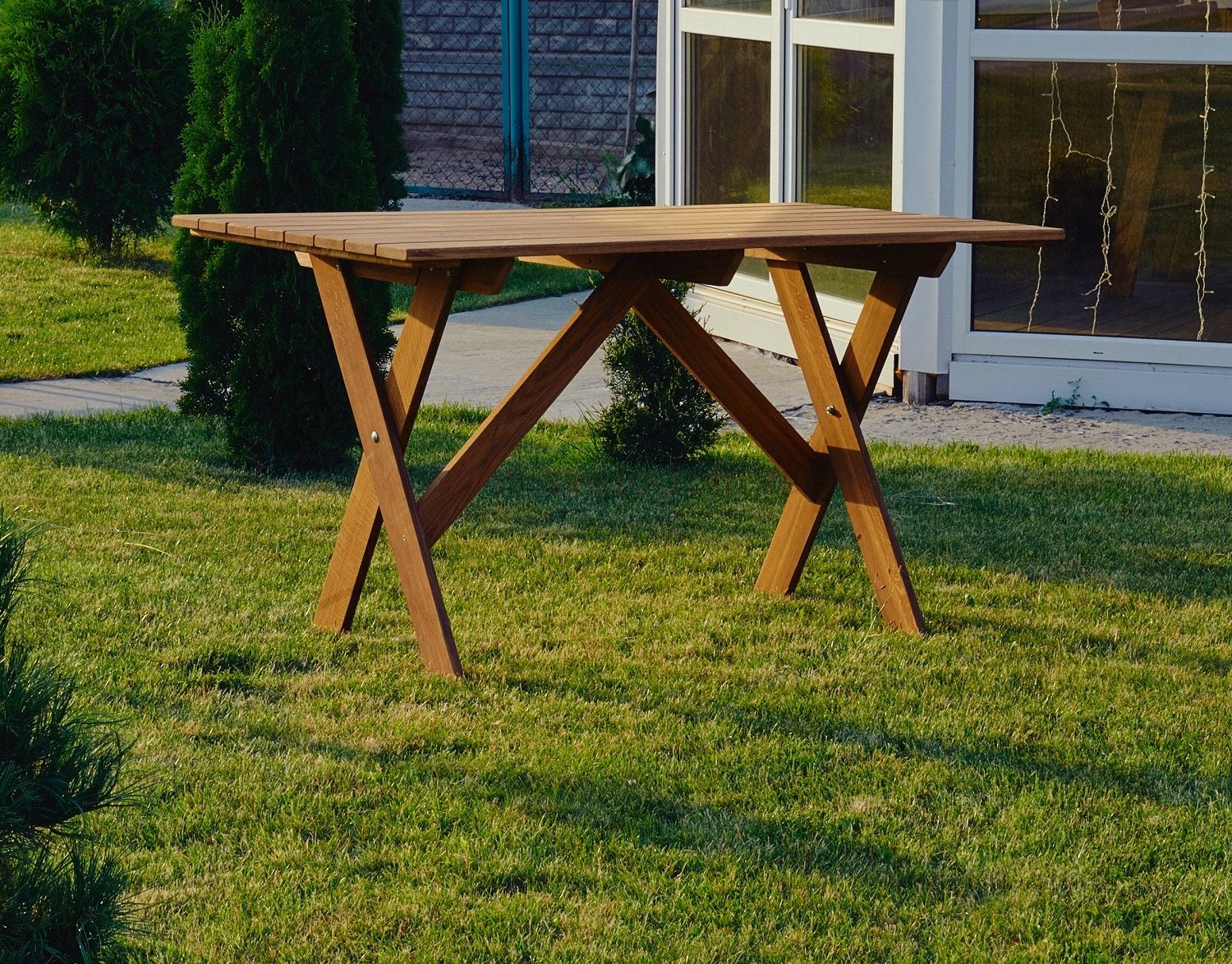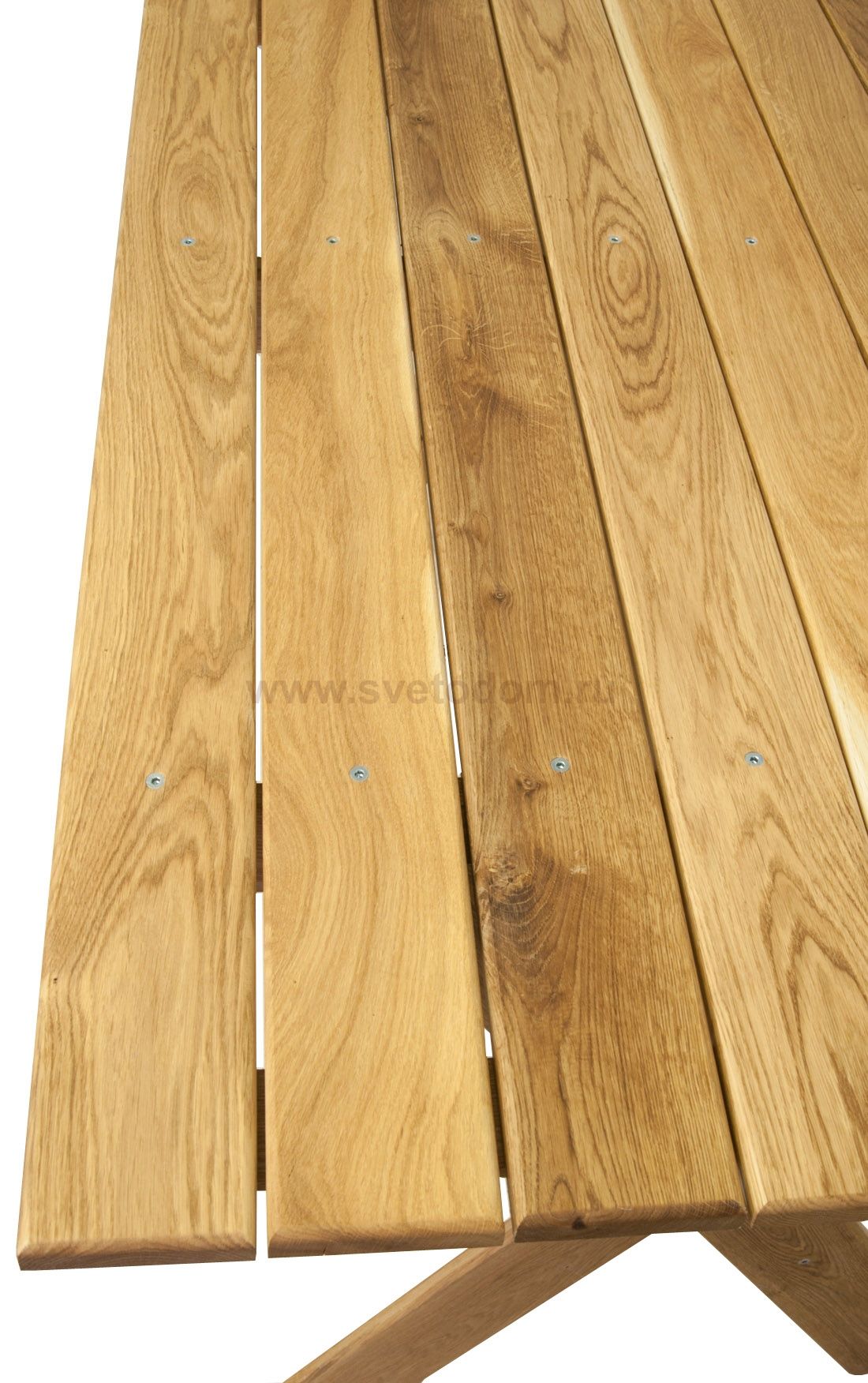 Стол производится из массива дуба. Проходит термическую обработку и пропитку в экологически чистом масле с содержанием 30% парафина, применяемого в косметической отрасли. Эта технология не дает возможности проникать в древесину атмосферной влаге или прямого попадания воды(дождя). Мебель имеет натуральный цвет с хорошо выраженной структурой. Дополнительно не покрывается никакими красителями или пропитками.