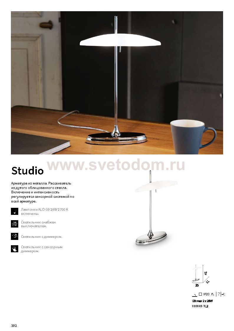 Настольная лампа – это не просто источник дополнительного освещения, но и оригинальный элемент декора. Его можно установить в спальне, гостиной, кабинете и других комнатах. Интернет-магазин «Светодом» предлагает настольные лампы разных стилей по доступным ценам. Благодаря большому ассортименту Вы обязательно найдете в нашем каталоге именно ту модель, которую искали. Настольная лампа Ideal lux STUDIO TL2 – прекрасный вариант для завершения интерьера. Ее можно включить одновременно с люстрой для более яркого освещения или без нее для создания уютной атмосферы, настраивающей на отдых. Купить настольную лампу Ideal lux STUDIO TL2 Вы можете с помощью виртуальной «Корзины» или по контактным номерам, указанным на сайте.