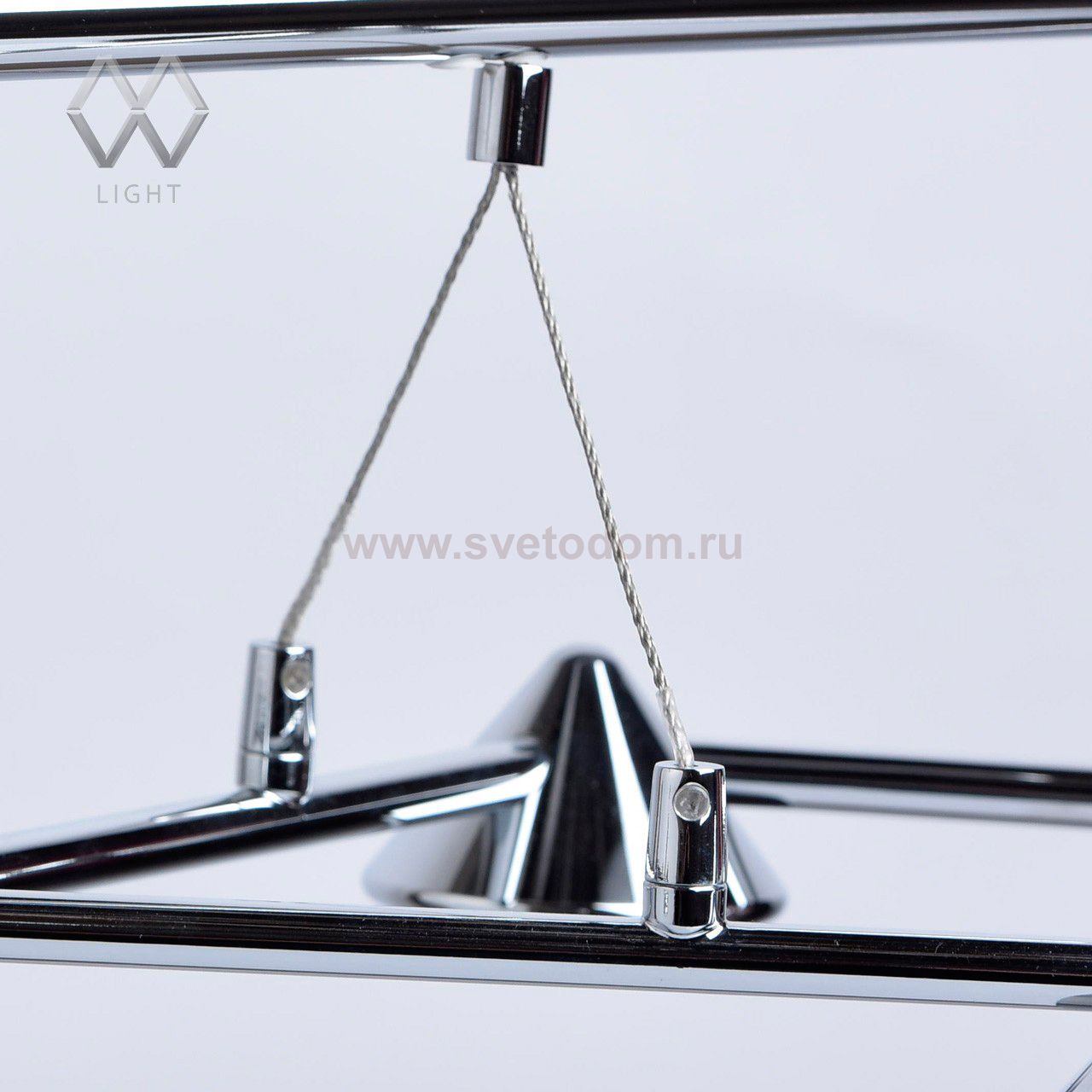 Основание светильника выполнено из нержавеющей стали и отполировано до зеркального блеска. Планка светильника выполнена из сплава металла и гальванизирована в цвет хрома. Корпус светильника крепится на тросах с возможностью ручного изменения высоты по технологии "ручной лифт". Корпус светодиодов выполнен из сплава алюминия, плафоны выполнены из белого матового акрила. Комментарий