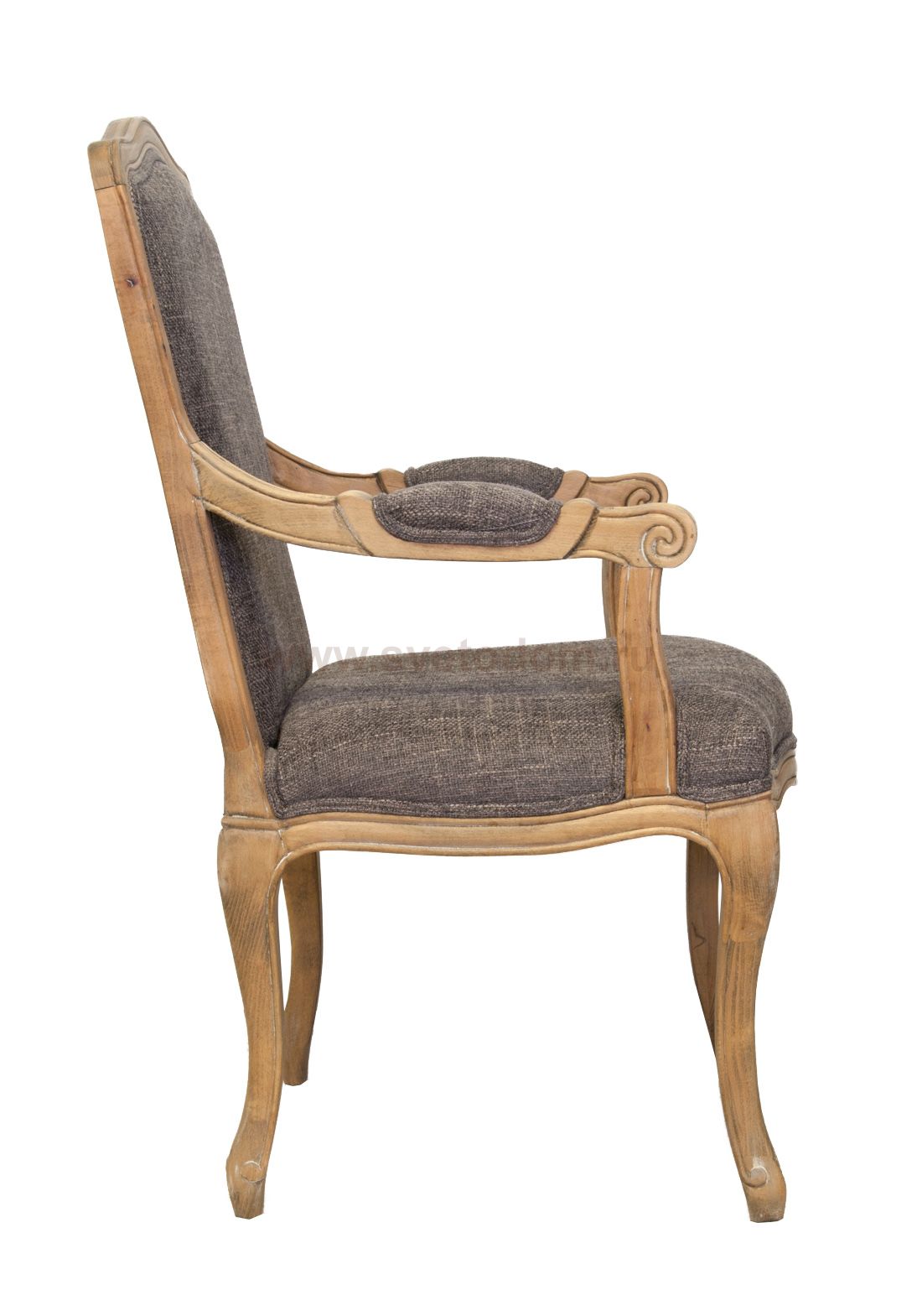 Выполнен в элегантном классическом стиле с изящной спинкой. Стул сделан из ценной древесной породы — массива дуба, искусственно состраренного. Ткань обивки выполнена из льна — экологически чистого и приятного материала на ощупь.