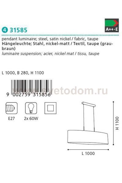 Подвесной светильник – это универсальный вариант, подходящий для любой комнаты. Сегодня производители предлагают огромный выбор таких моделей по самым разным ценам. В каталоге интернет-магазина «Светодом» мы собрали большое количество интересных и оригинальных светильников по выгодной стоимости. Вы можете приобрести их в Москве, Екатеринбурге и любом другом городе России. Подвесной светильник Eglo 31585 сразу же привлечет внимание Ваших гостей благодаря стильному исполнению. Благородный дизайн позволит использовать эту модель практически в любом интерьере. Она обеспечит достаточно света и при этом легко монтируется. Чтобы купить подвесной светильник Eglo 31585, воспользуйтесь формой на нашем сайте или позвоните менеджерам интернет-магазина.