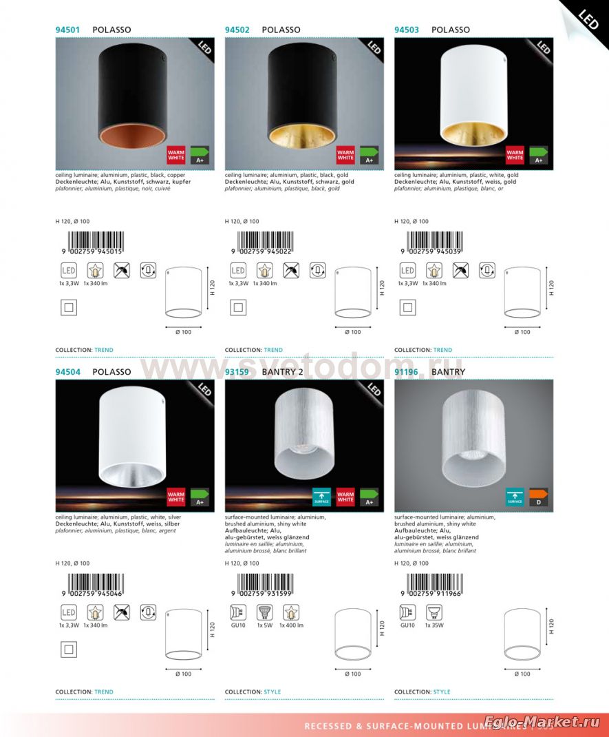 Приобрести настенно-потолочный светильник Eglo 94501 можно, находясь в любой точке России.