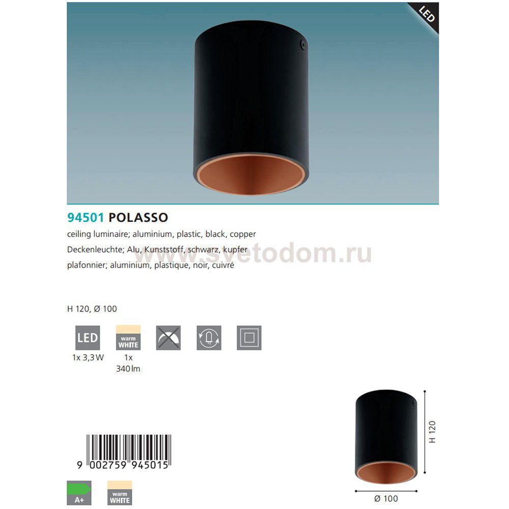 Настенно-потолочный светильник Eglo 94501 POLASSO