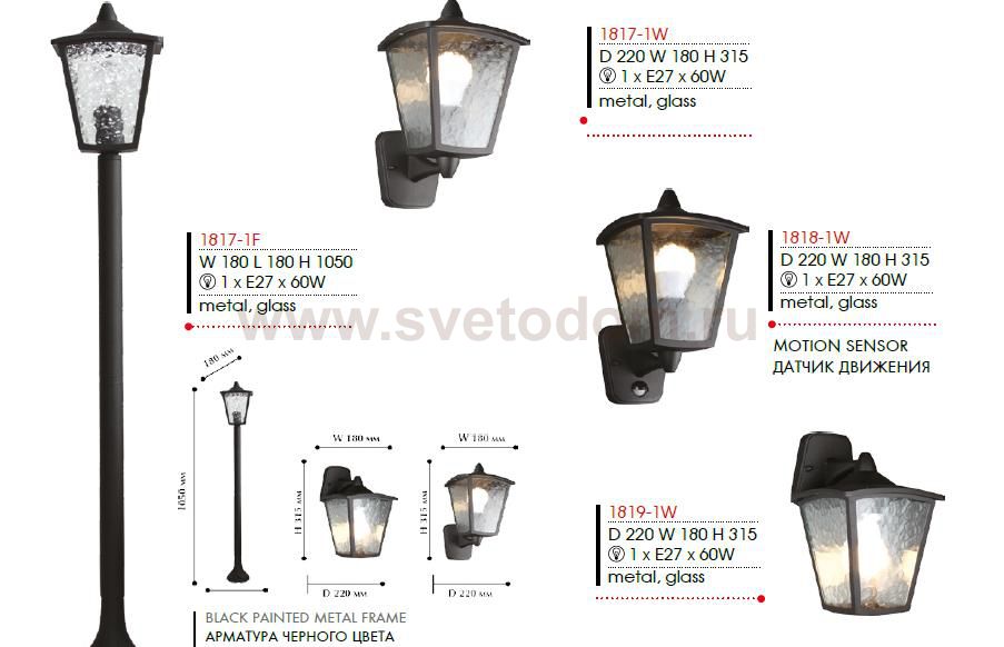 Выбирая модель светильника Favourite 1818-1W, обратите внимание, что каркас черного матового цвета, полупрозрачное стекло с эффектом льда, датчик движения. Дополнительная информация в характеристиках или по телефону. |