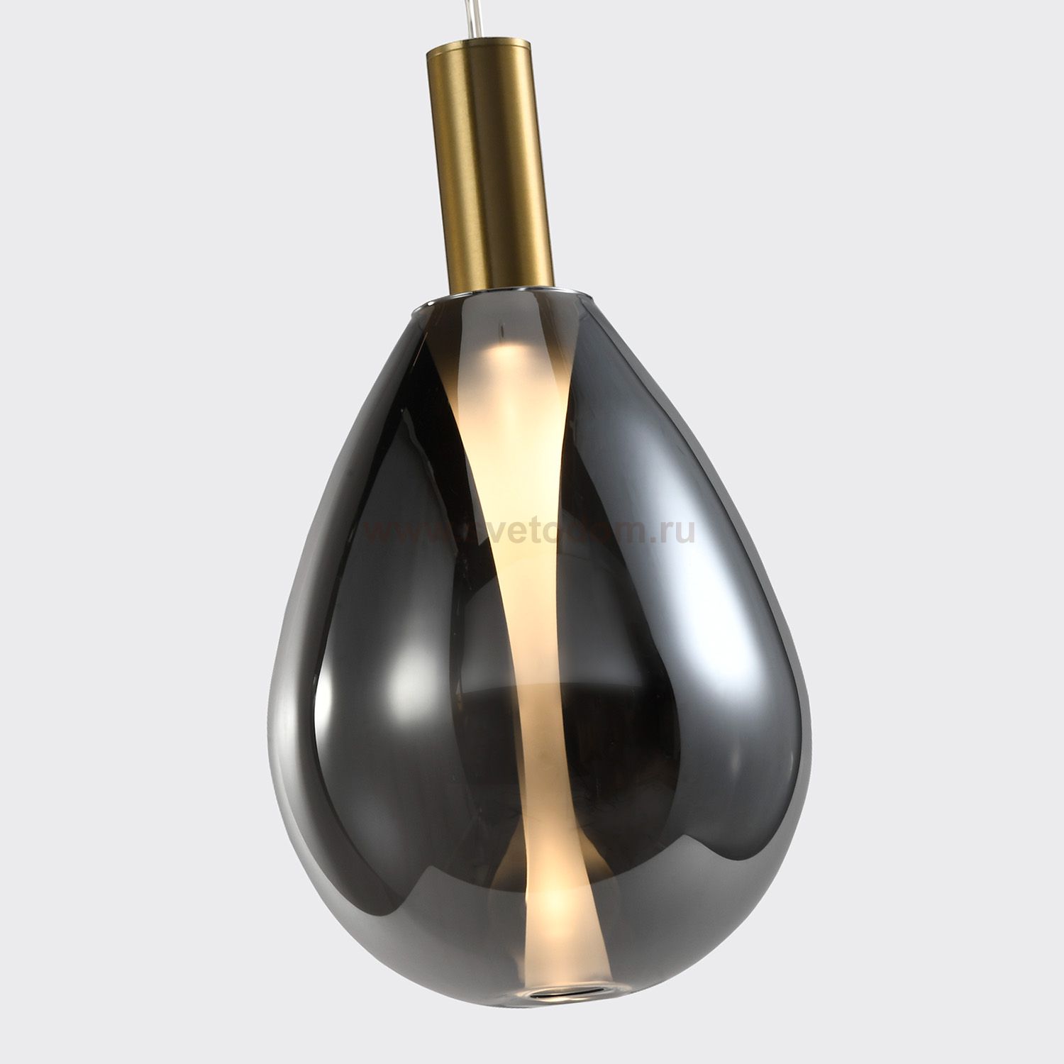 Подвес с декоративным элементом цвета латунь в центре, плафон дымчато-серого цвета подсвечивается изнутри светодиодным источником света, регулируемая Серия