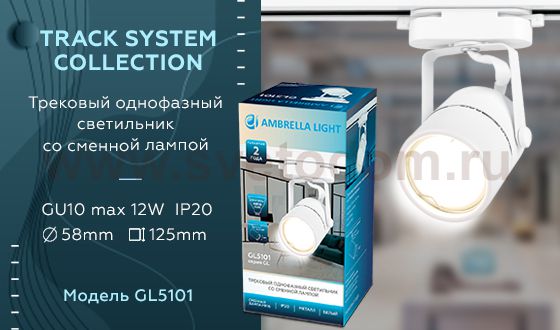 трековый однофазный светильник (лампа GU10 не в комплекте) Штрих-код