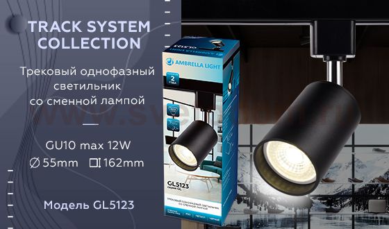 Трековые светильники коллекции TRACK SYSTEM подходят для создания индивидуального акцента освещения в любых помещениях. Поворотный механизм позволит направить освещение под любым нужным вам углом. Для данных светильников подойдет лампа с цоколем GU10