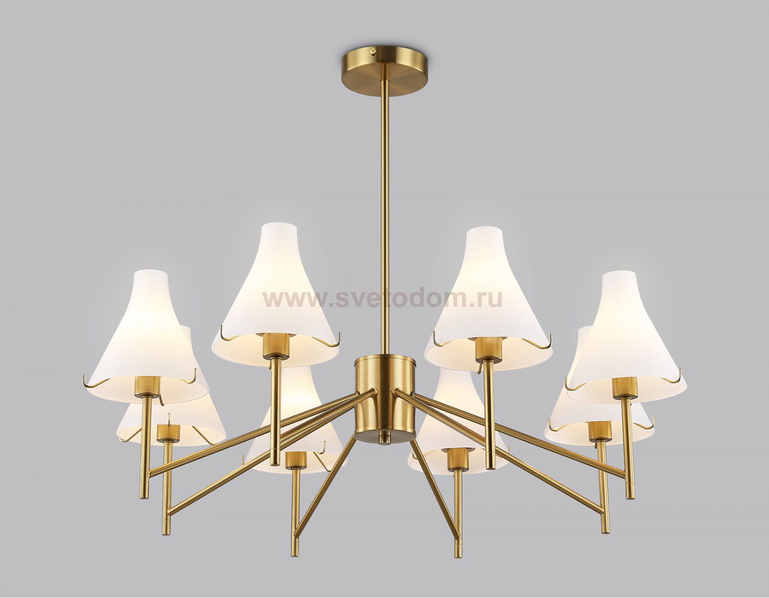 Подвесная люстра из коллекции HIGH LIGHT. Модель LH57135 представлена в стиле неоклассика. Люстра выполнена из металлического каркаса цвета латунь и стеклянных матовых плафонов. Для данной модели подойдут лампы с цоколем Е14. Люстра будет прекрасным дополнением в любом помещении.