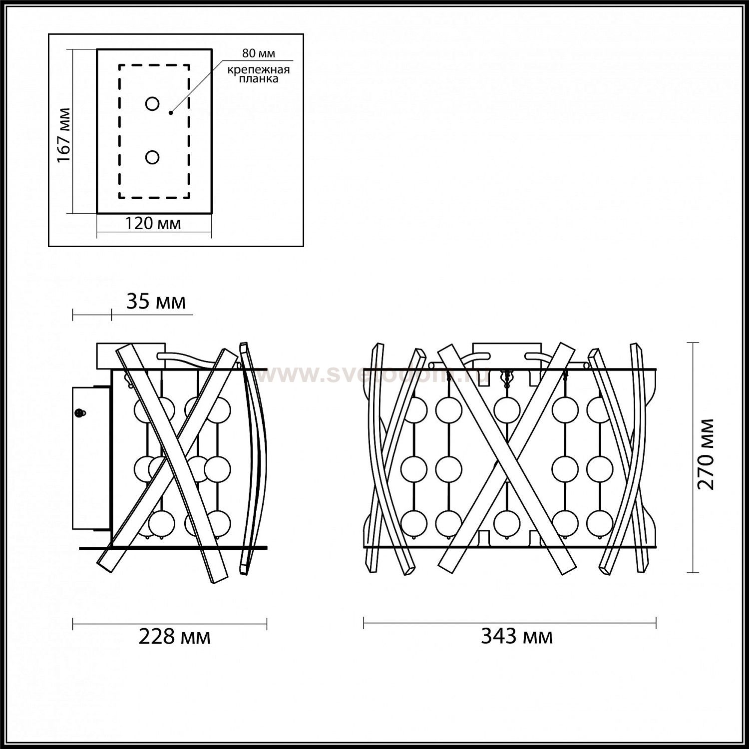 Арматура, декор: металл, хромированные стеклянные шарики; плафон: металл с акриловыми вставками Материал плафона
