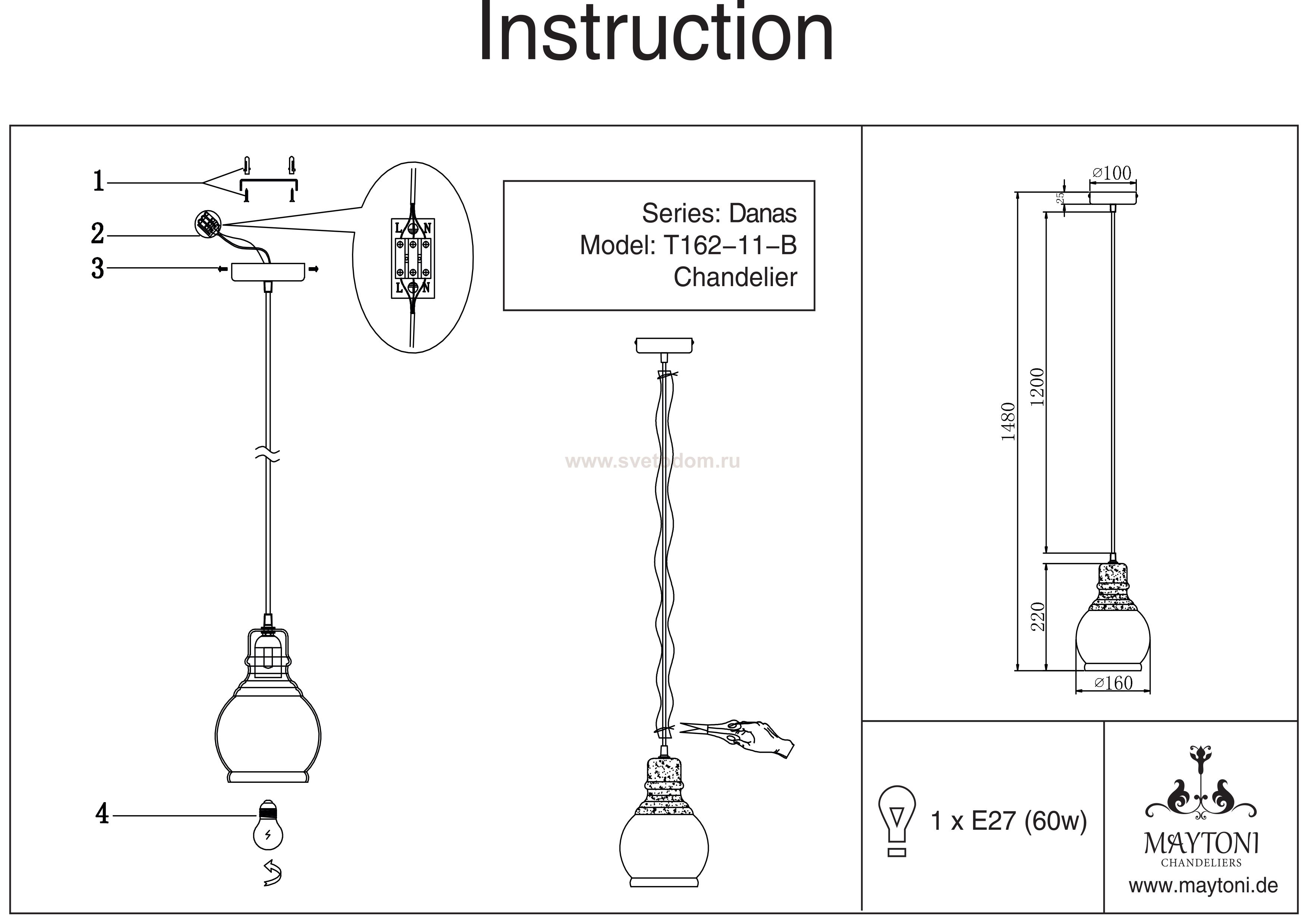 Подвесной светильник – это универсальный вариант, подходящий для любой комнаты. Сегодня производители предлагают огромный выбор таких моделей по самым разным ценам. В каталоге интернет-магазина «Светодом» мы собрали большое количество интересных и оригинальных светильников по выгодной стоимости. Вы можете приобрести их в Москве, Екатеринбурге и любом другом городе России. Подвесной светильник Maytoni T162-11-B сразу же привлечет внимание Ваших гостей благодаря стильному исполнению. Благородный дизайн позволит использовать эту модель практически в любом интерьере. Она обеспечит достаточно света и при этом легко монтируется. Чтобы купить подвесной светильник Maytoni T162-11-B, воспользуйтесь формой на нашем сайте или позвоните менеджерам интернет-магазина. |