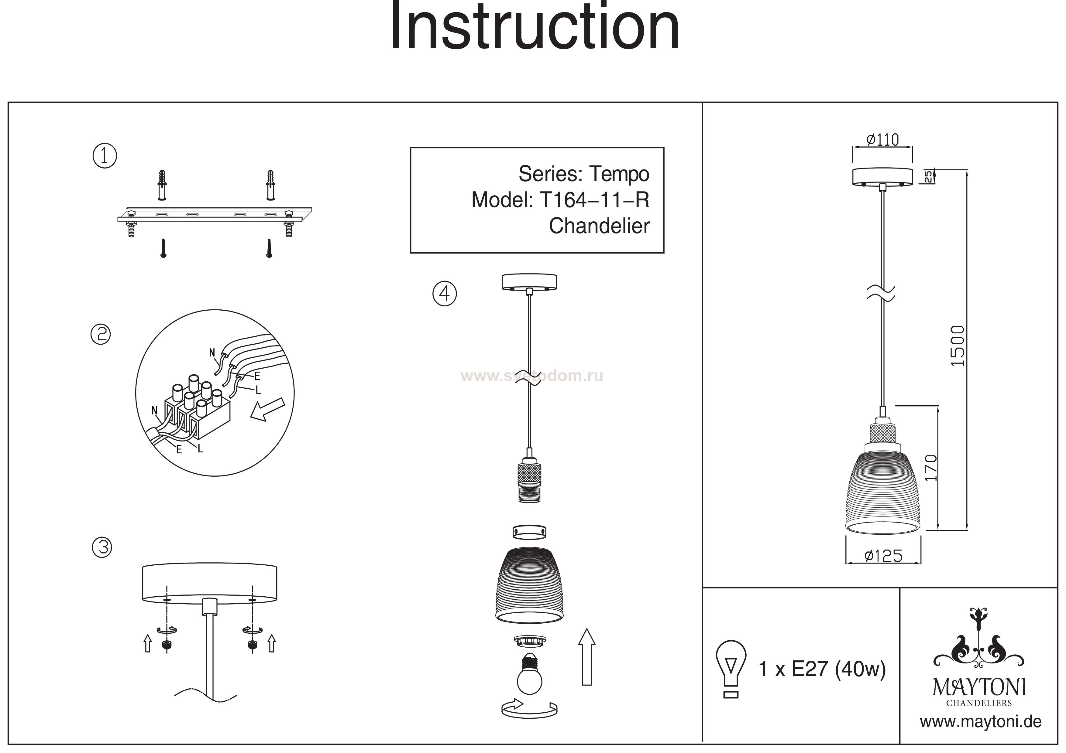 Подвесной светильник – это универсальный вариант, подходящий для любой комнаты. Сегодня производители предлагают огромный выбор таких моделей по самым разным ценам. В каталоге интернет-магазина «Светодом» мы собрали большое количество интересных и оригинальных светильников по выгодной стоимости. Вы можете приобрести их в Москве, Екатеринбурге и любом другом городе России. Подвесной светильник Maytoni T164-11-R сразу же привлечет внимание Ваших гостей благодаря стильному исполнению. Благородный дизайн позволит использовать эту модель практически в любом интерьере. Она обеспечит достаточно света и при этом легко монтируется. Чтобы купить подвесной светильник Maytoni T164-11-R, воспользуйтесь формой на нашем сайте или позвоните менеджерам интернет-магазина. |