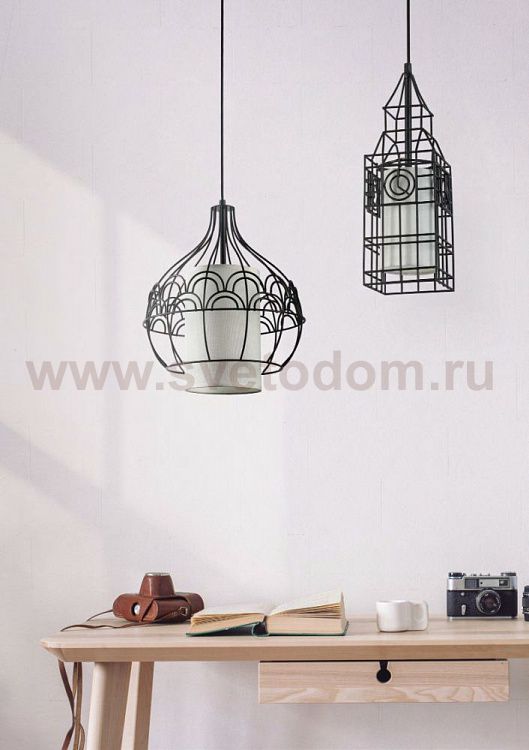 Каркас из металлических прутьев в виде мировых произведений архитектуры. Плафон из белого хлопка. Дополнительно