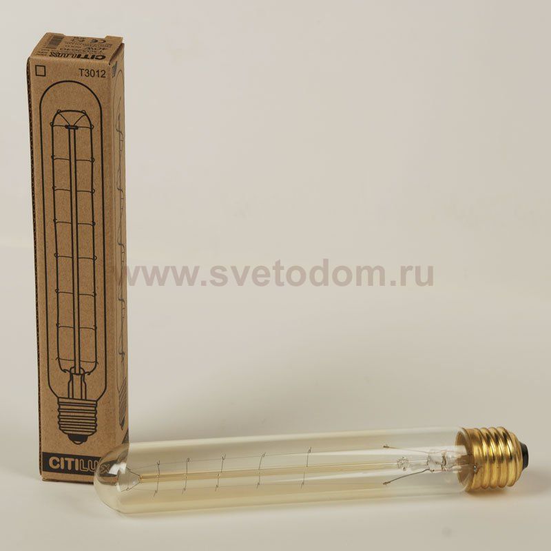 Ретролампа накаливания, Длина 185мм, Диаметр 30мм, нить установлена на 12 поддержках, золотистая колба и латунный цоколь, средний срок службы 3000ч. Комментарий