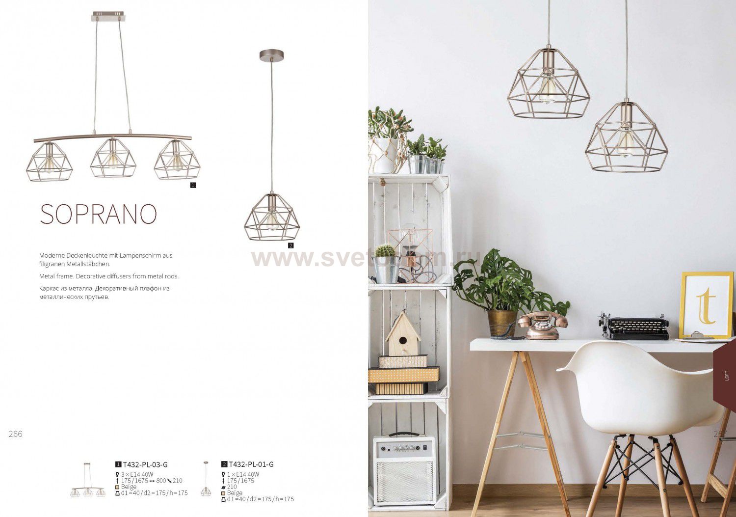 100 Отзывы Подвесной светильник Maytoni T432-PL-03-G SopranoПока нет отзывов об этом товаре, напишите и он обязательно появится после модерации! Оставить свой отзывПохожие товары Другие товары магазина Фото