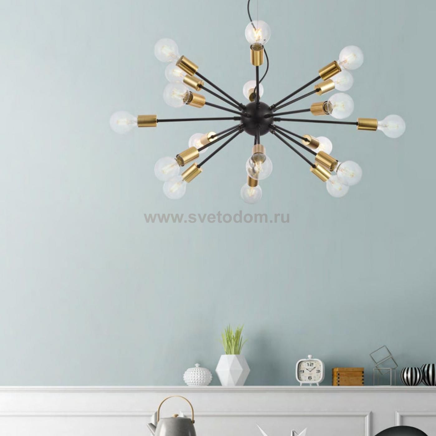 Арматура из металла с черным покрытием. Дизайн светильников в стиле лофт дополнен цоколями цвета латуни. Комментарий