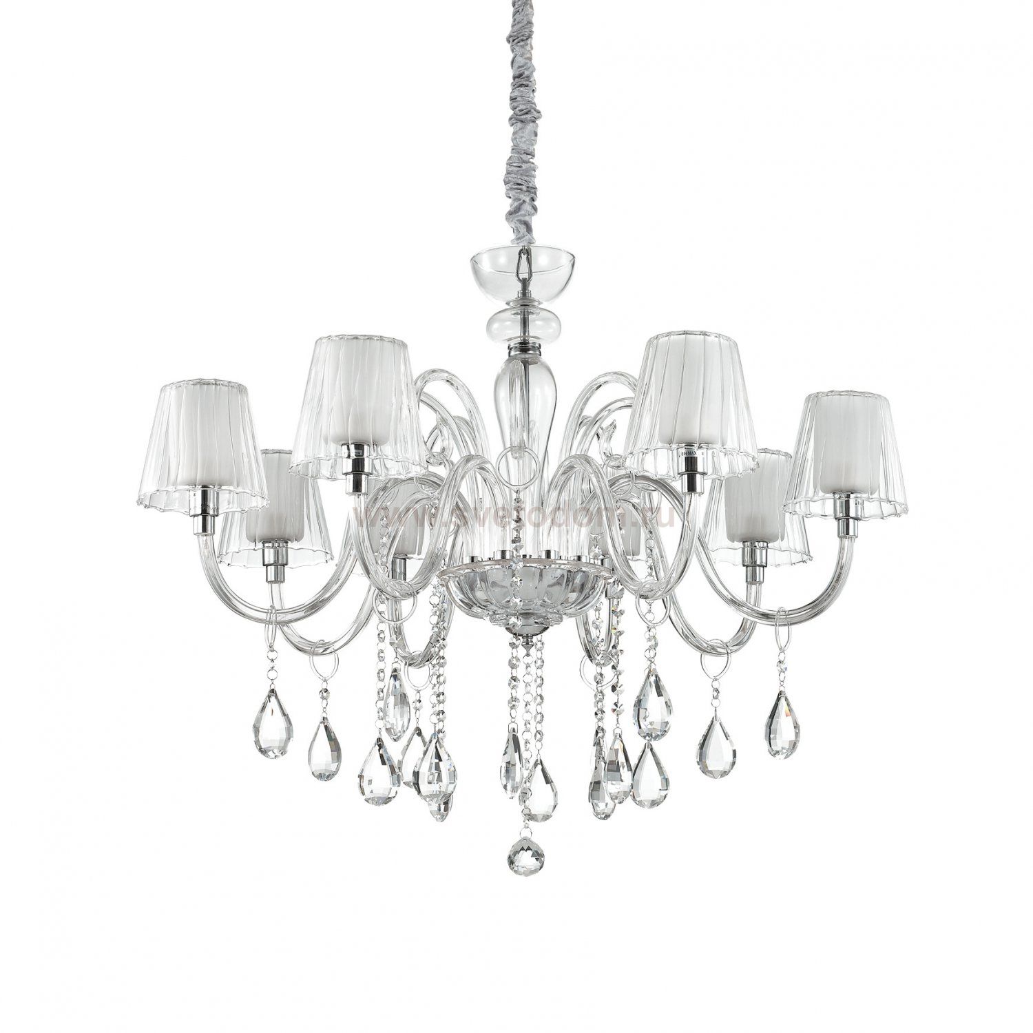 Люстра от известной итальянской фабрики Ideal lux из каталога Classico в классическом стиле под артикулом TERRY SP8 (112404) серии TERRY имеет ряд отличительных характеристик: Люстра из дутого прозрачного стекла ручной работы. Аматура и детали из хромированного металла. Абажуры из прозрачного стекла с внутренней частью пескоструйной обработки. Подвески из восьмиугольных хрусталиков и капелек с фацетом.