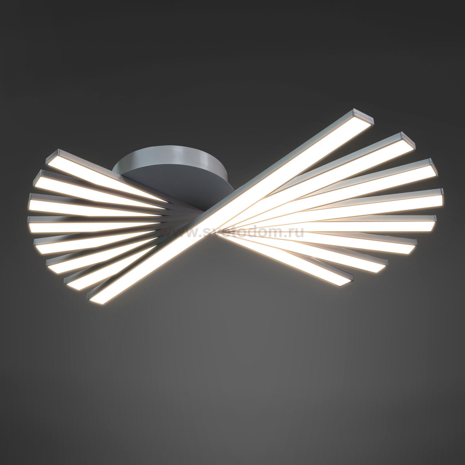 Стильная, современная люстра – светодиодный потолочный светильник в форме веера. Идеально подходит для интерьеров в стиле модерн, хайтек, лофт. Испускает естественный белый, яркий свет, без выраженных пятен. Преимущества: 1. Надежный и долговечный: диоды расположены на алюминиевой плате, а не на ленте. 2. Прочный: основание и корпус и металла, а не из пластика. 3. Безопасный: нулевой коэффициент мерцания – благоприятно для зрения.