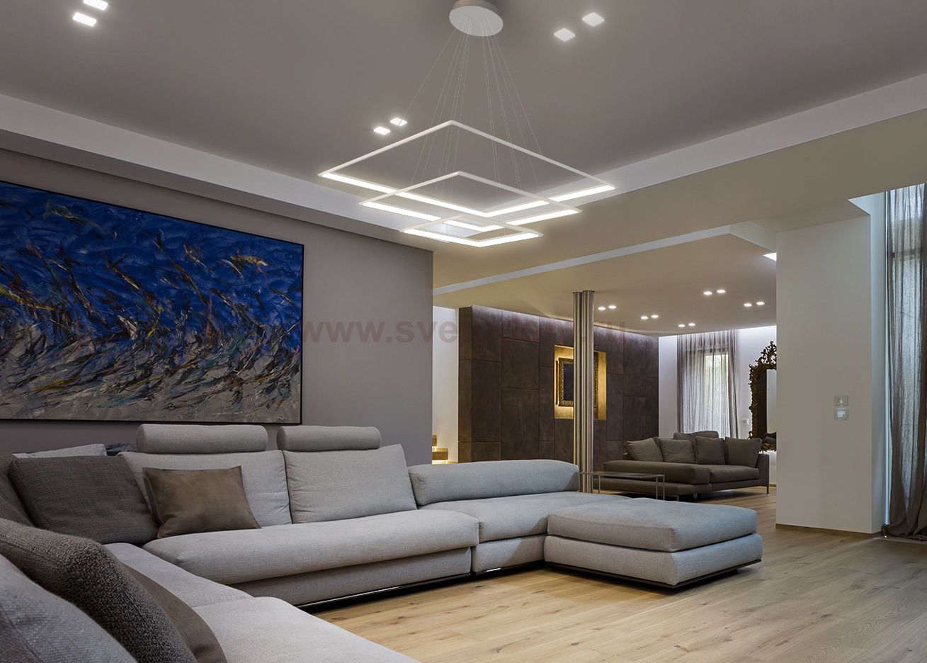 Стильная, современная люстра – светодиодный дизайнерский светильник в форме квадрата. Подходит для интерьеров в стиле модерн, хайтек, лофт. Преимущества: 1. Надежный и долговечный: диоды расположены на алюминиевой плате, а не на ленте. 2. Прочный: основание и корпус и металла, а не из пластика. 3. Безопасный: нулевой коэффициент мерцания – благоприятно для зрения.