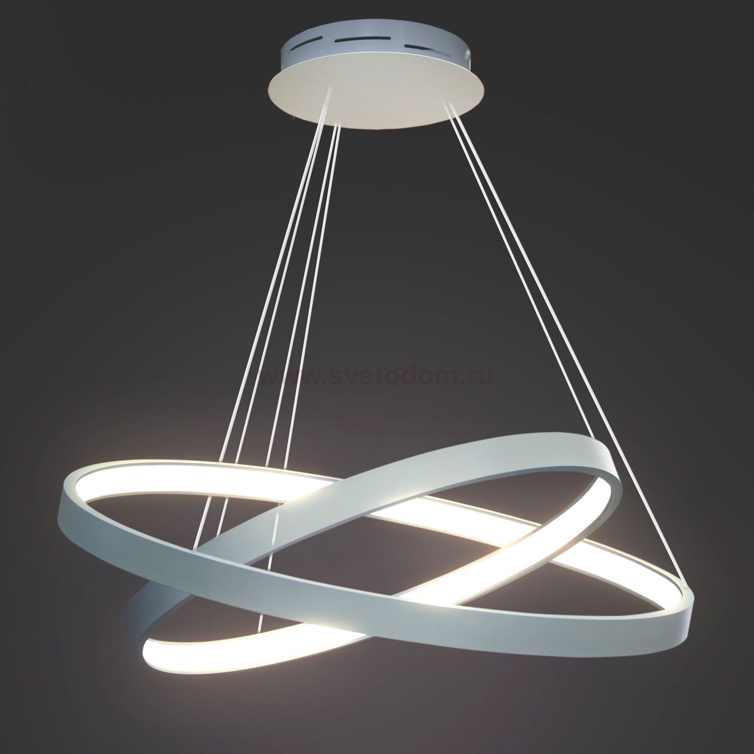Стильная, современная люстра – светодиодный дизайнерский светильник из двух колец. Подходит для интерьеров в стиле модерн, хайтек, лофт. Испускает тепло-белый яркий свет, похожий на солнышко, без выраженных пятен. Преимущества: 1. Надежный и долговечный: диоды расположены на алюминиевой плате, а не на ленте. 2. Прочный: основание и корпус и металла, а не из пластика. 3. Безопасный: нулевой коэффициент мерцания – благоприятно для зрения.