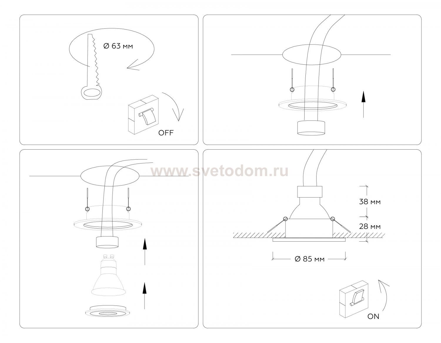 Данный размер указывает какое отверстие необходимо сделать для правильного монтажа. Зачастую светильники выбирают после ремонта и сделанных монтажных отверстий, тогда подбор осуществляется строго в размер +/- 2-5мм.