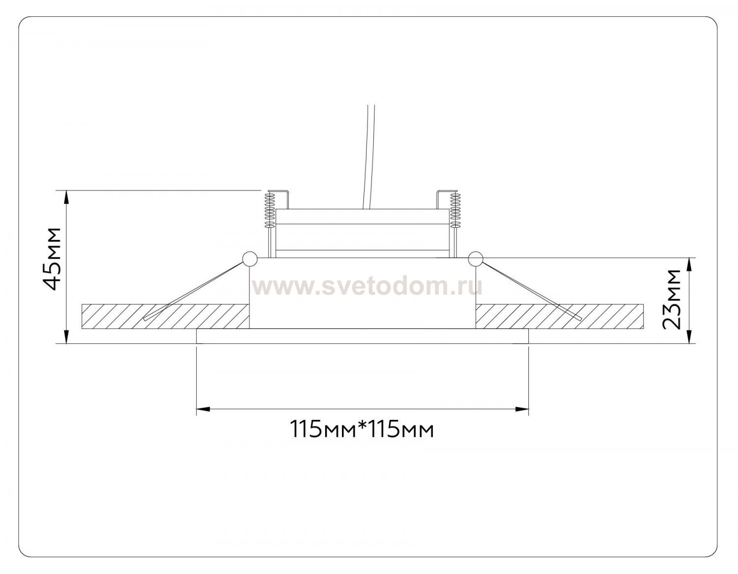 Данный размер указывает какое отверстие необходимо сделать для правильного монтажа. Зачастую светильники выбирают после ремонта и сделанных монтажных отверстий, тогда подбор осуществляется строго в размер +/- 2-5мм.