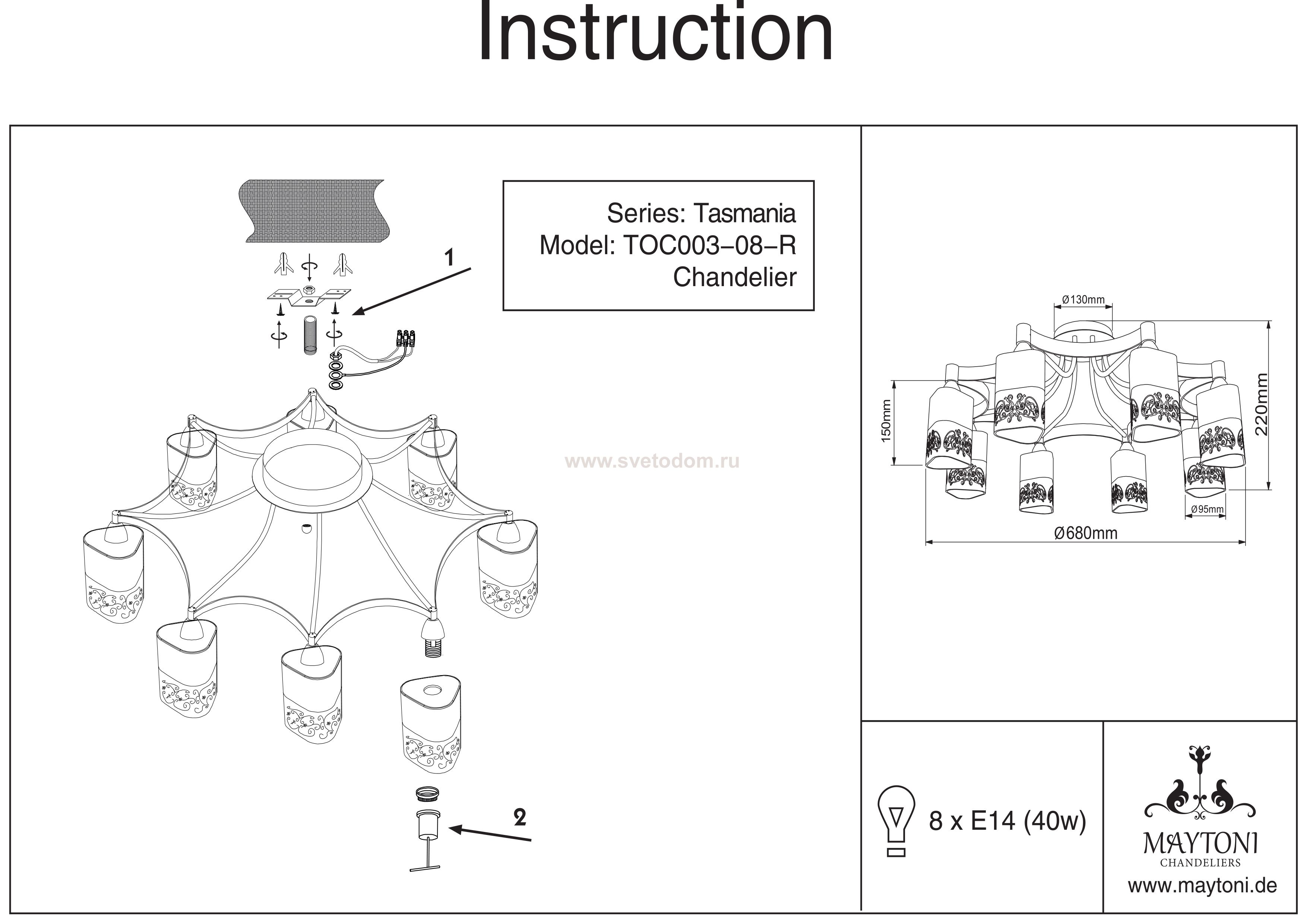 100 Отзывы Люстра Maytoni TOC003-08-R Eurosize TasmaniaПока нет отзывов об этом товаре, напишите и он обязательно появится после модерации! Оставить свой отзывПохожие товары Другие товары магазина Фото