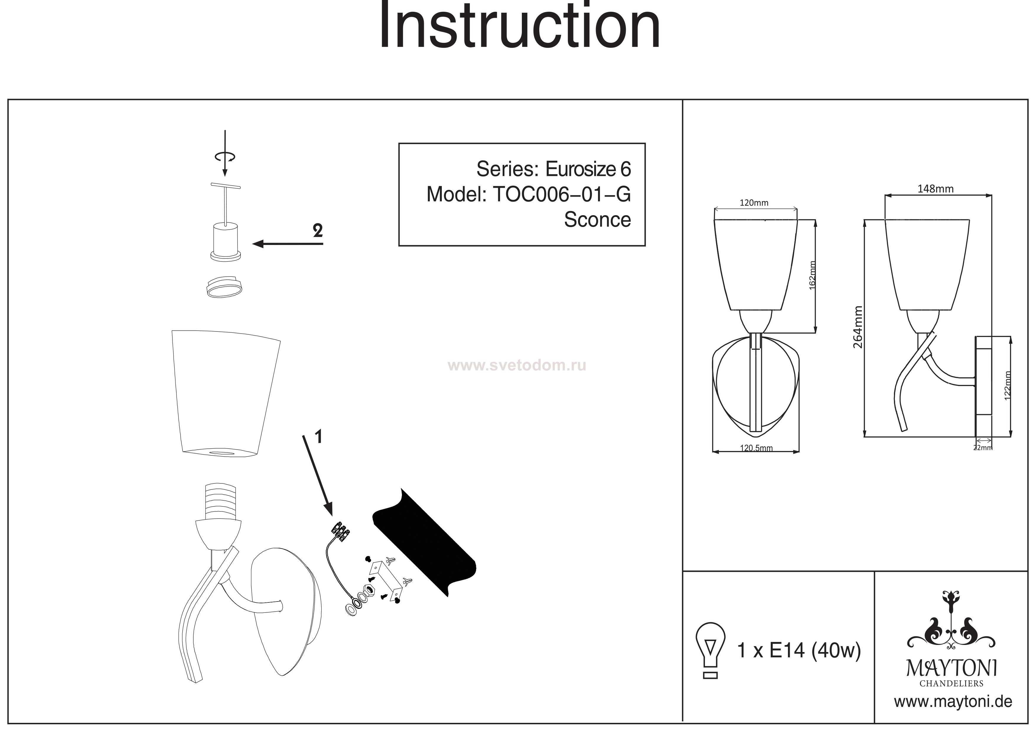 100 Отзывы Светильник настенный бра Maytoni TOC006-01-G Eurosize Eurosize 6Пока нет отзывов об этом товаре, напишите и он обязательно появится после модерации! Оставить свой отзывПохожие товары Другие товары магазина Фото