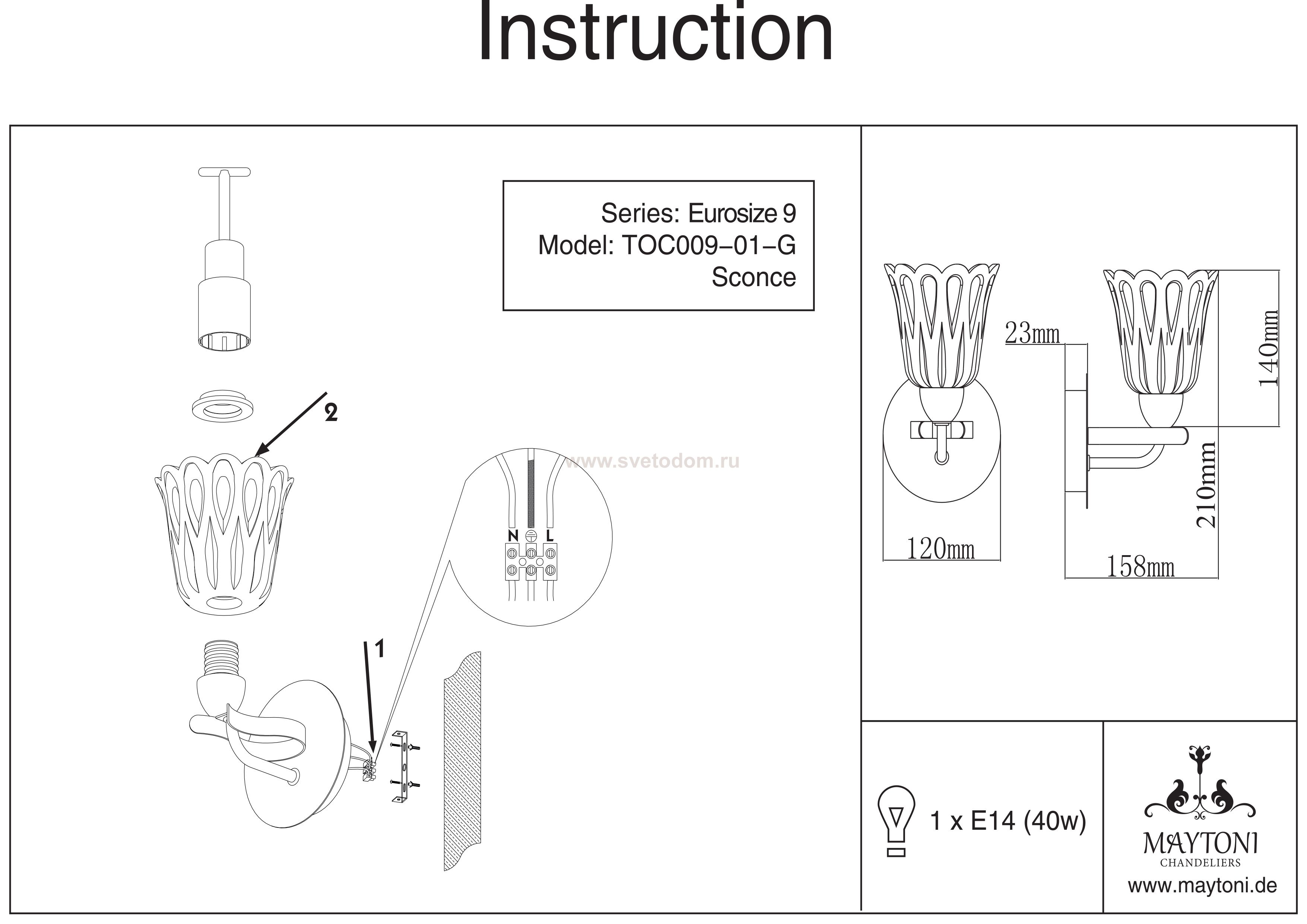 Группой специалистов немецкой фирмы Maytoni был разработан дизайн оригинального бра, фото которого вы можете посмотреть на странице нашего электронного каталога. Ярко выделяющейся особенностью бра Maytoni TOC009-01-G является его стеклянный плафон, имеющий форму едва распустившегося цветка, лепестки которого прозрачны, в отличие от остальной его матовой части. Такой прибор будет уместен в любой обстановке, так как отличается универсальностью исполнения. Цена светильника от бренда Майтони не является заоблачной, при помощи чего прибору становится еще легче завоевать популярность среди потенциальных покупателей. Единственное, что может увеличить его итоговую стоимость, это необходимость самостоятельной покупки одной лампочки с цоколем Е 14. |