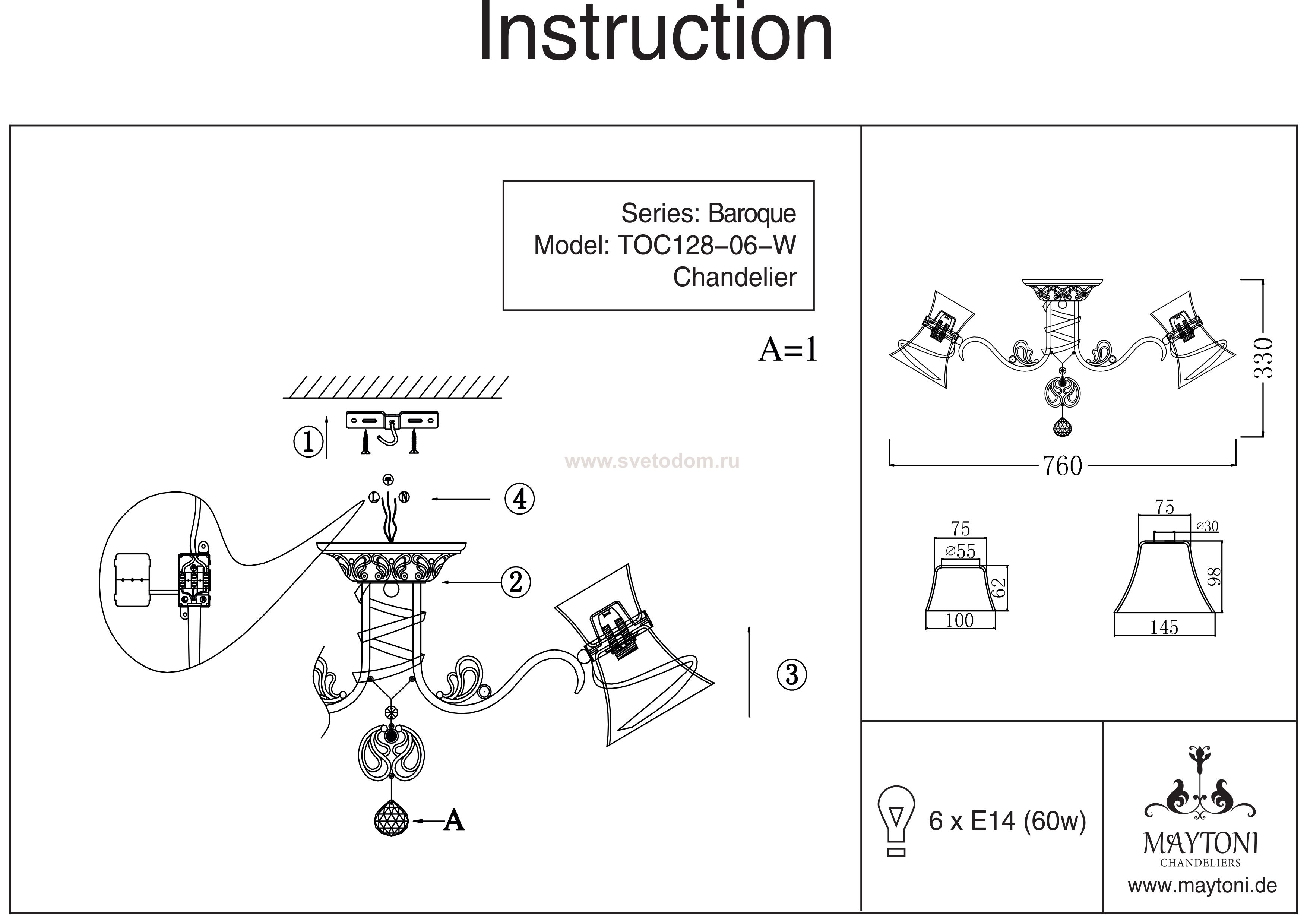 100 Отзывы Люстра Maytoni TOC128-06-W BaroqueПока нет отзывов об этом товаре, напишите и он обязательно появится после модерации! Оставить свой отзывПохожие товары Другие товары магазина Фото