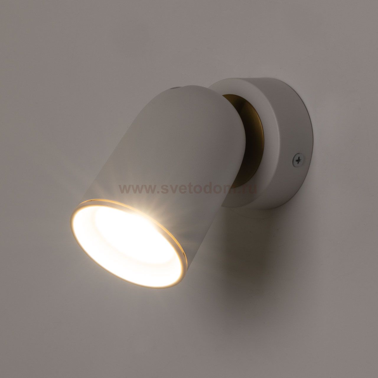 Белый цвет придает настенному бра свежий и современный вид. Для декоративного эффекта, основание закрыто пластиной цвета латуни. Гармоничное сочетание белого цвета и декора цвета латуни добавляет бра утонченности. Поворотный плафон позволяет направлять световой поток в нужную сторону, что создает комфортное освещение. Заменяемый источник света удобен в эксплуатации. Технология производства