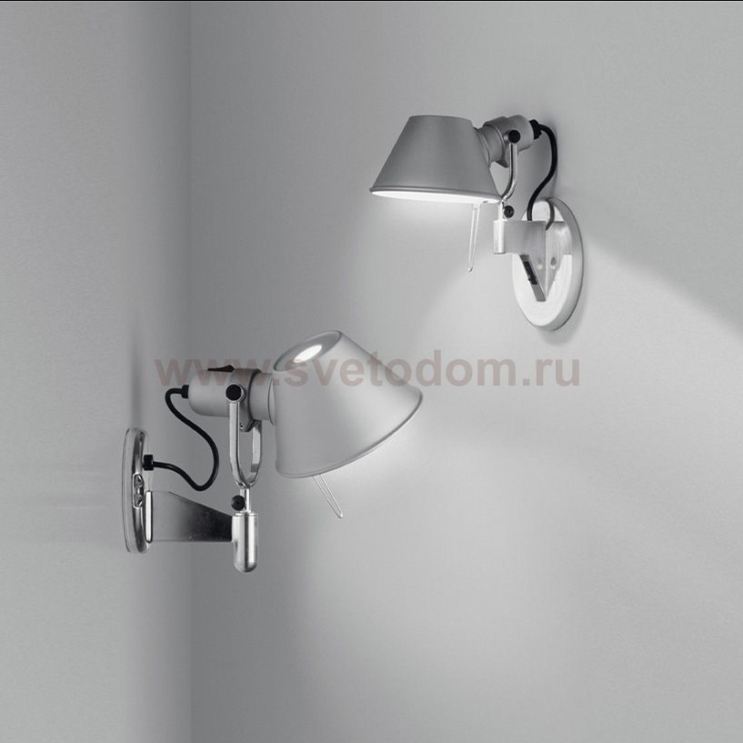 Настенный светильник из знаменитой серии Tolomeo. Абажур выполнен из матового алюминия, а основание - из полированного алюминия. |