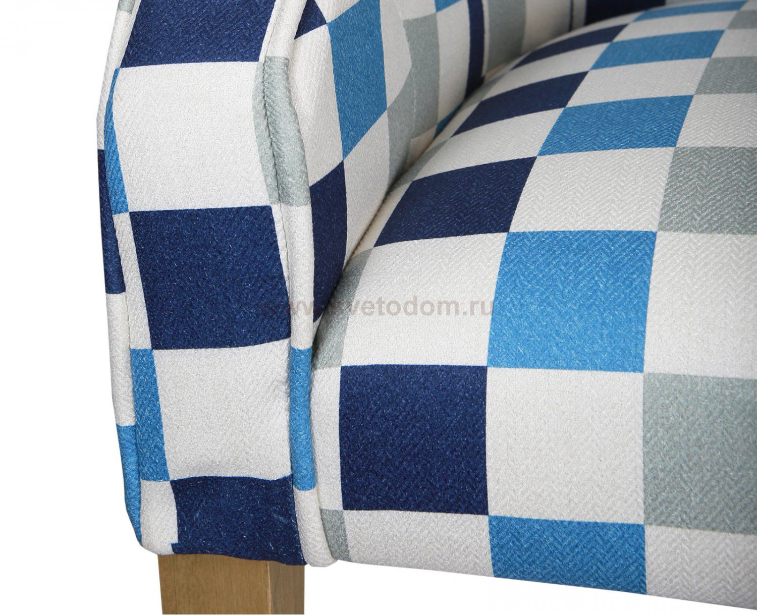 Низкое кресло Laela cubes vol.2 с коричневыми деревянными ножками и мягкой обивкой из натурального льна. Рисунок из чередующихся кубов белого и разных оттенков синего цвета придает изделию оригинальный внешний облик. Закругленная спинка переходит в широкие подлокотники, пышное сиденье обеспечивает комфортный отдых. Модель органично вписывается в интерьер жилых помещений, вносит в них тепло и уют. Подходит для обустройства городских квартир и загородных домов.