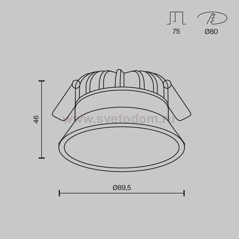 Данный размер указывает какое отверстие необходимо сделать для правильного монтажа. Зачастую светильники выбирают после ремонта и сделанных монтажных отверстий, тогда подбор осуществляется строго в размер +/- 2-5мм.