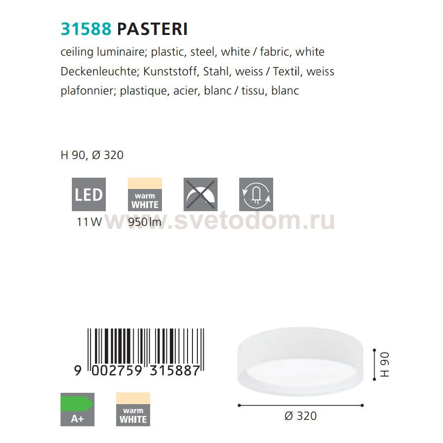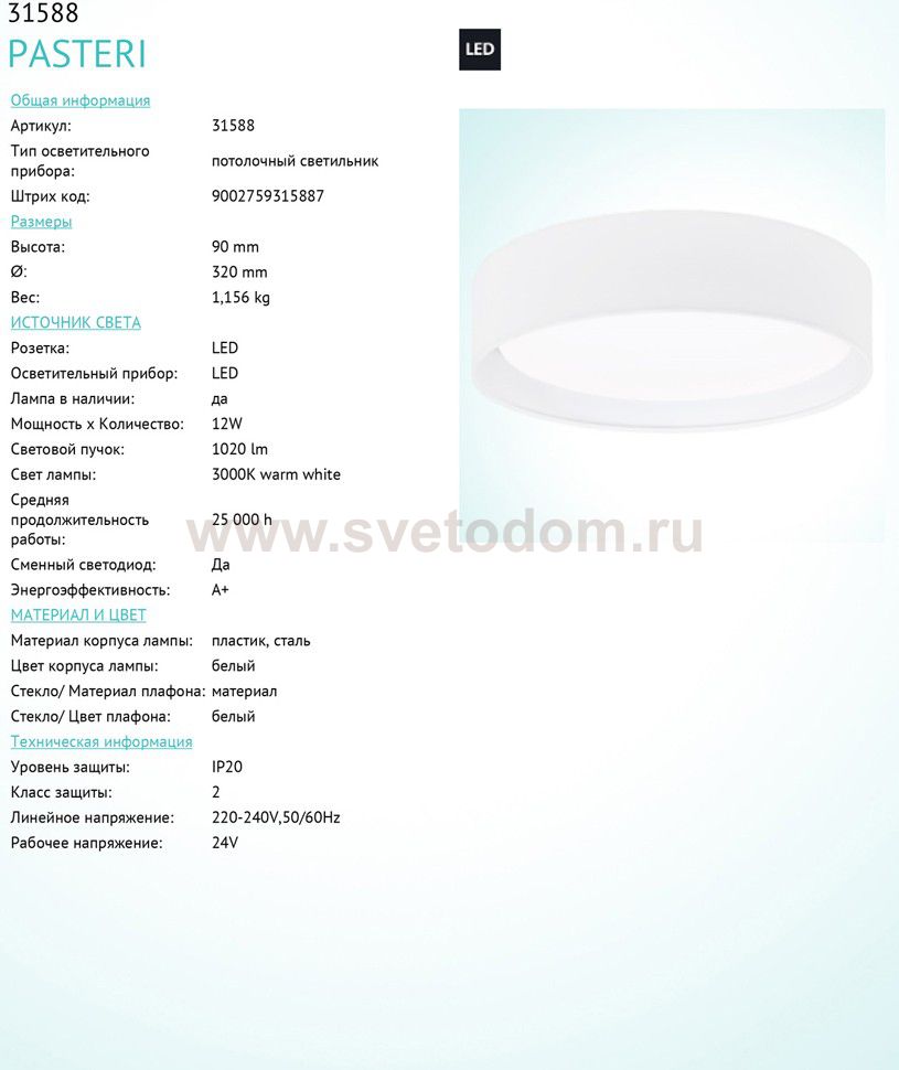 Светильник потолочный светодиодный PASTERI Комментарий